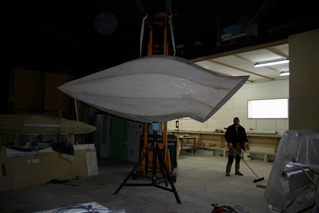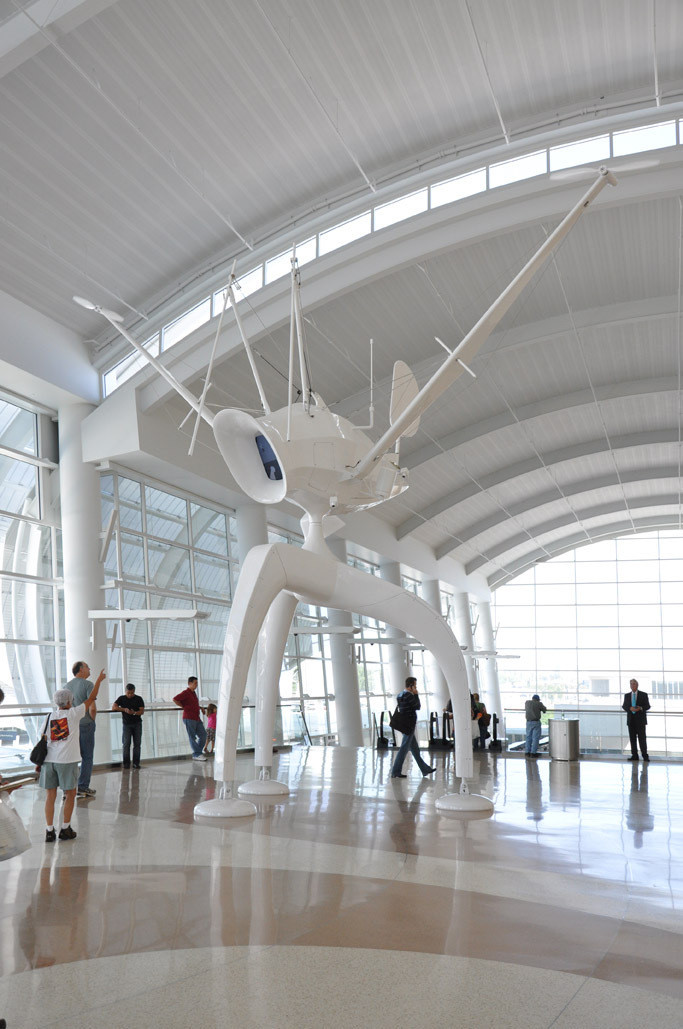 Technische Umsetzung der mechanischen Komponenten am Rumpf von Björn Schülkes "Space Observer" im Flughafen von San Jose, USA.