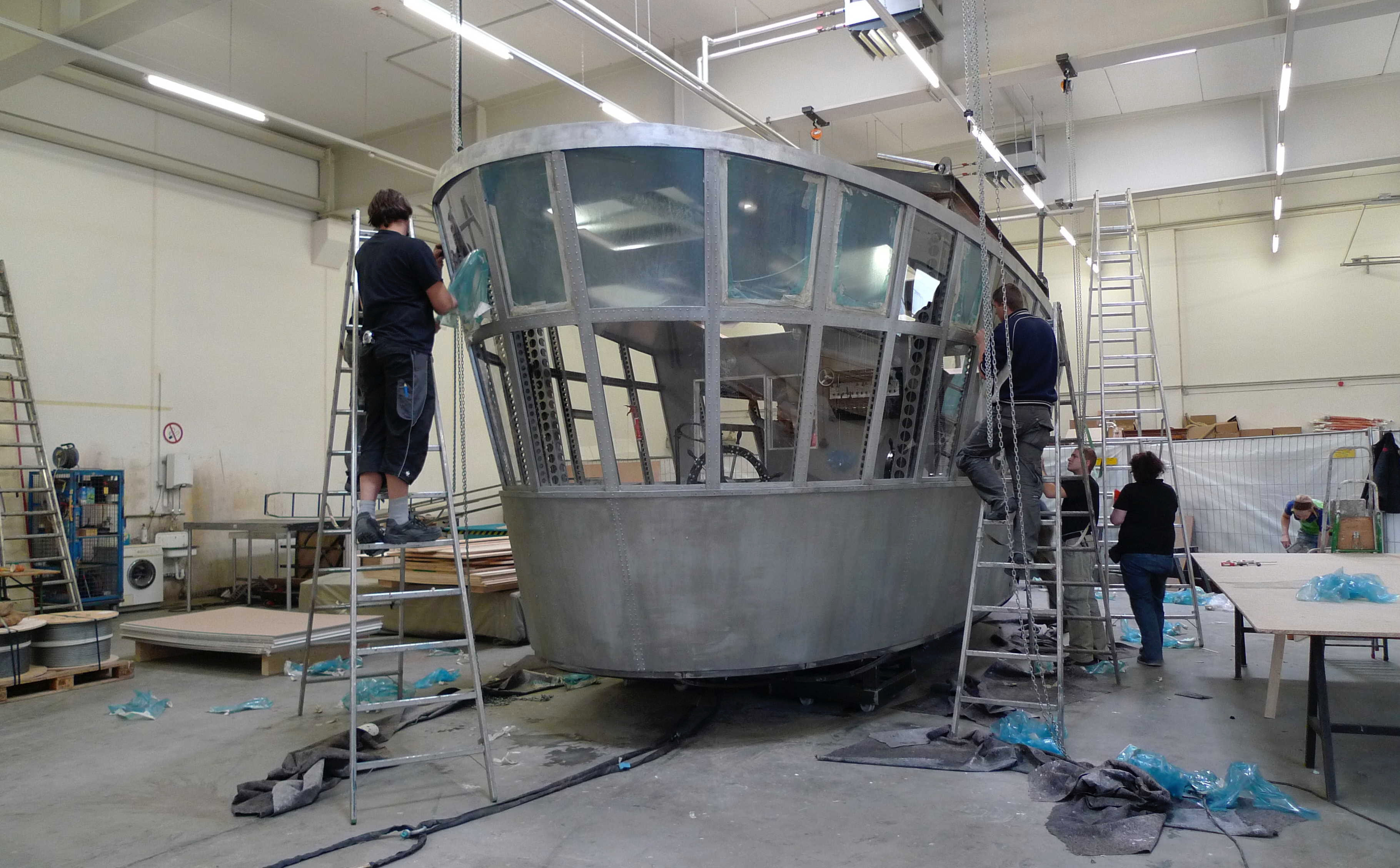 Tragende Konstruktion der Pilotenkanzel sowie authentische Reproduktionen von Treppenaufgängen, Geländern und Requisiten / Sonderprofile zur Verkleidung der Gerüststruktur im inneren des Luftschiff-Rumpfes.