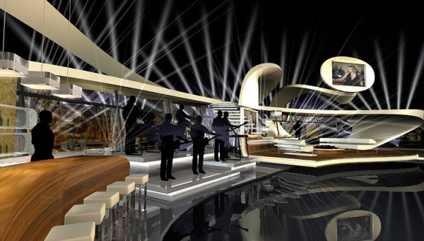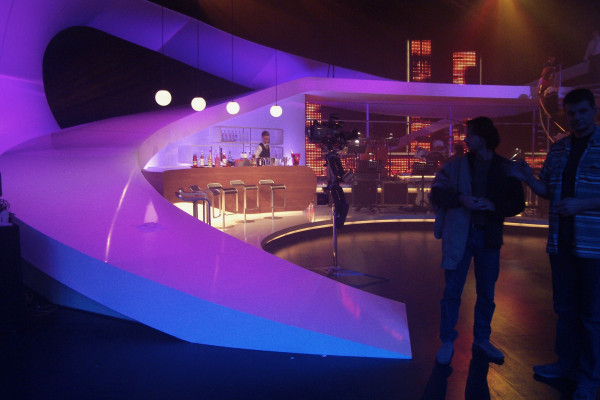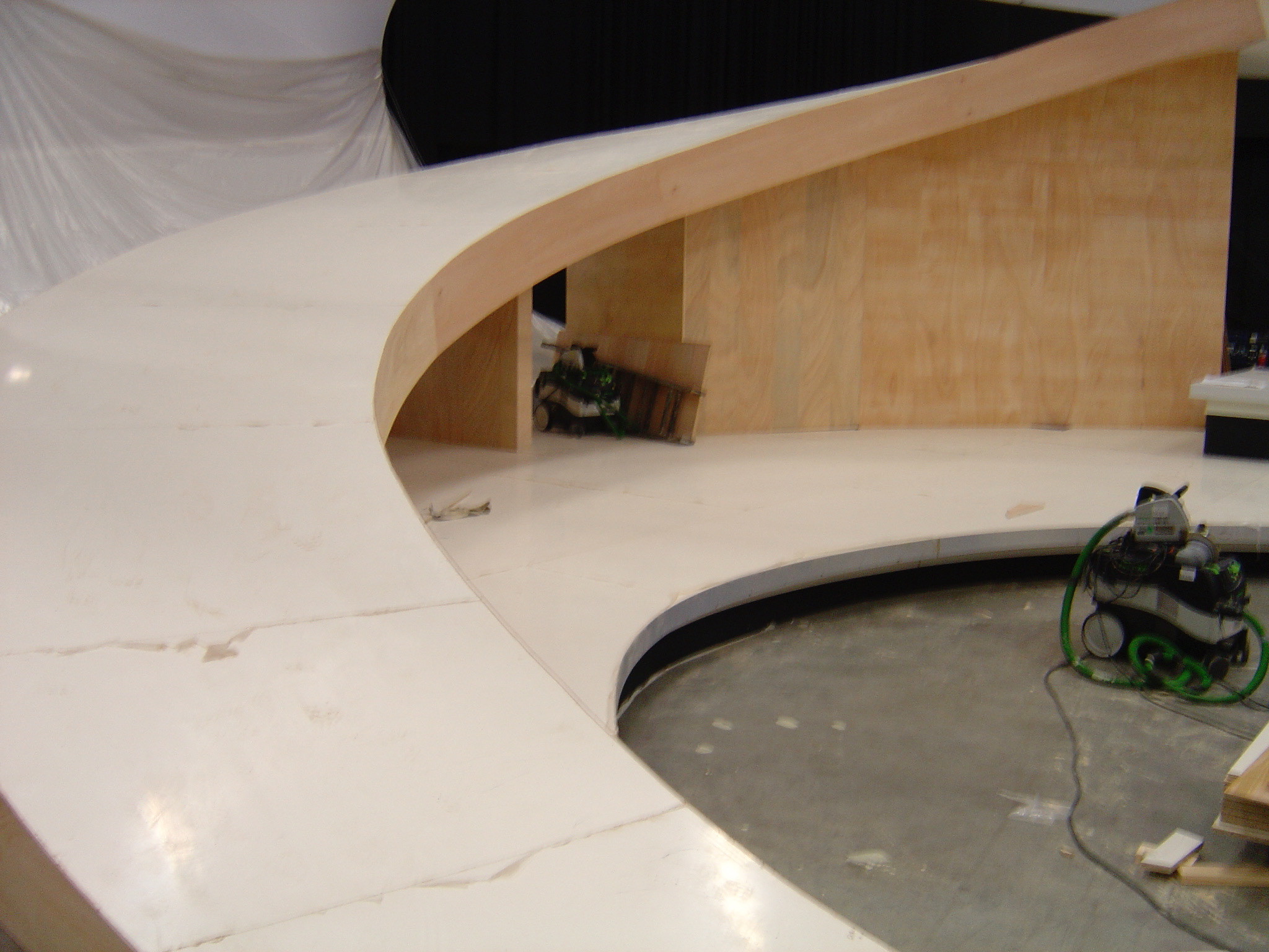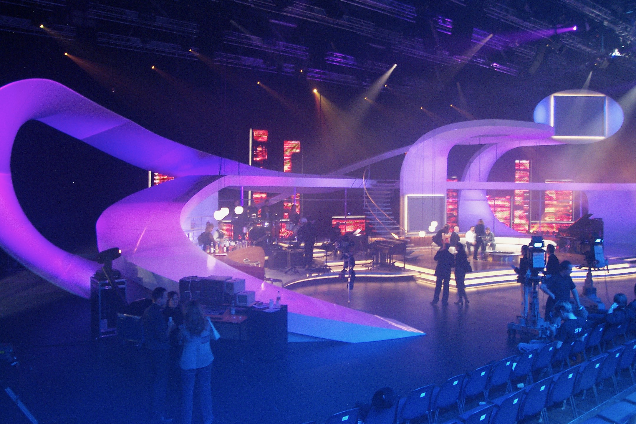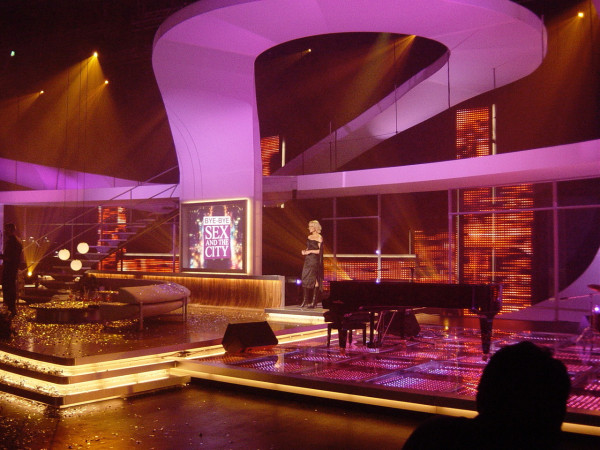 Geschwungene Rampe und gedrehte Treppe für aufwendige Bühnenkonstruktion. Besonderheit: es standen nur 10 Tage Bauzeit zur Verfügung.