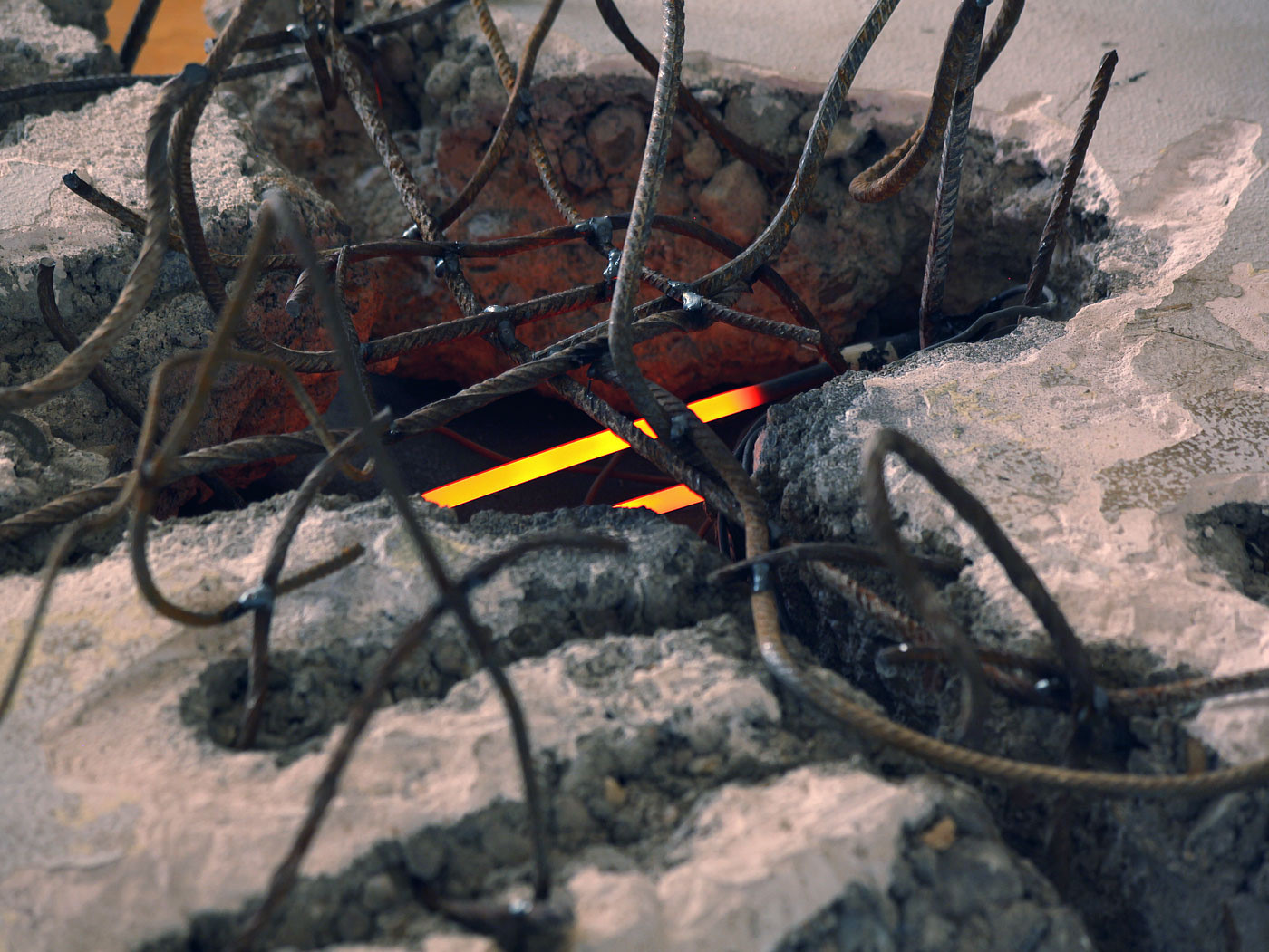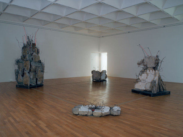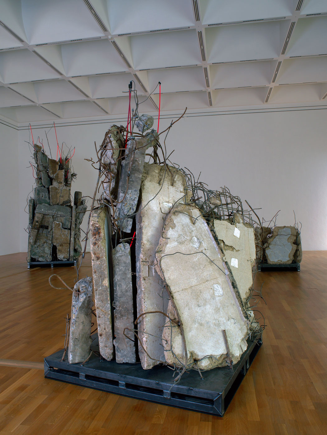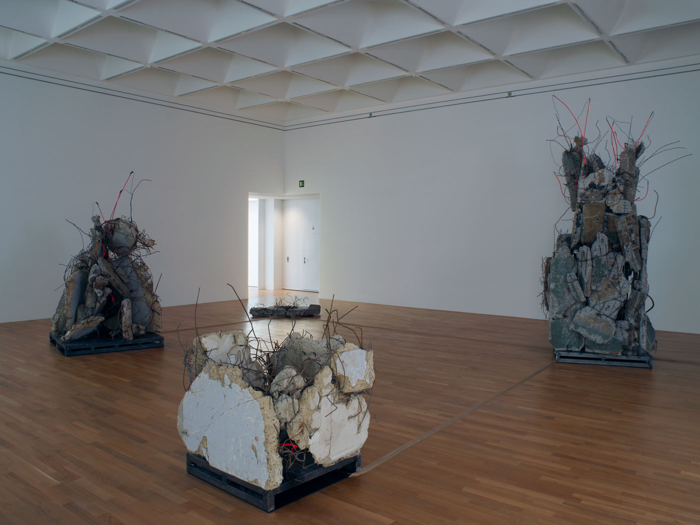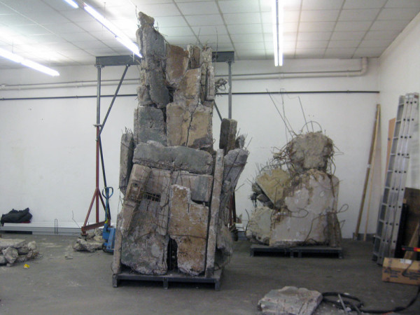 Statik und Herstellung der tragenden Stahlkonstruktion für die Installation ZwanzigZehn von Christian Keinstar im Kunstmuseum Bonn. Der größte Turm ist fast 4 Meter hoch. Die Betonbruchstücke wurden einzeln an die Gerüstkonstruktion geschweißt.