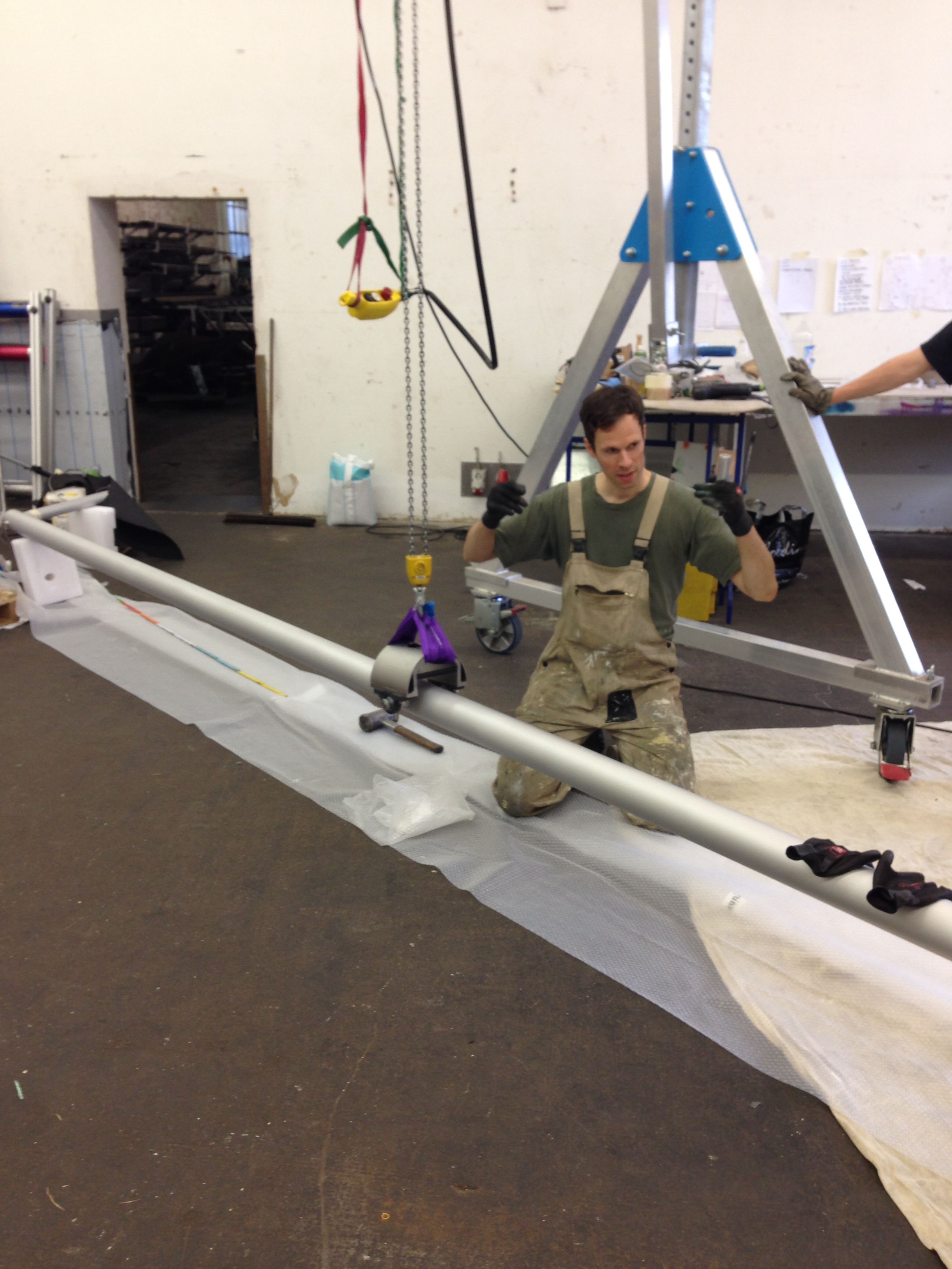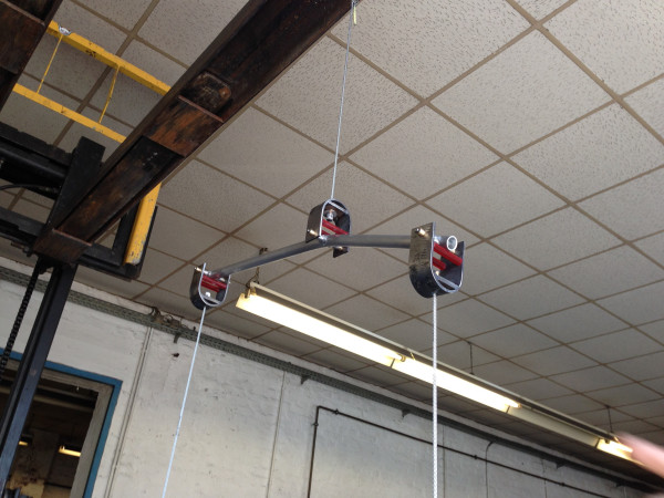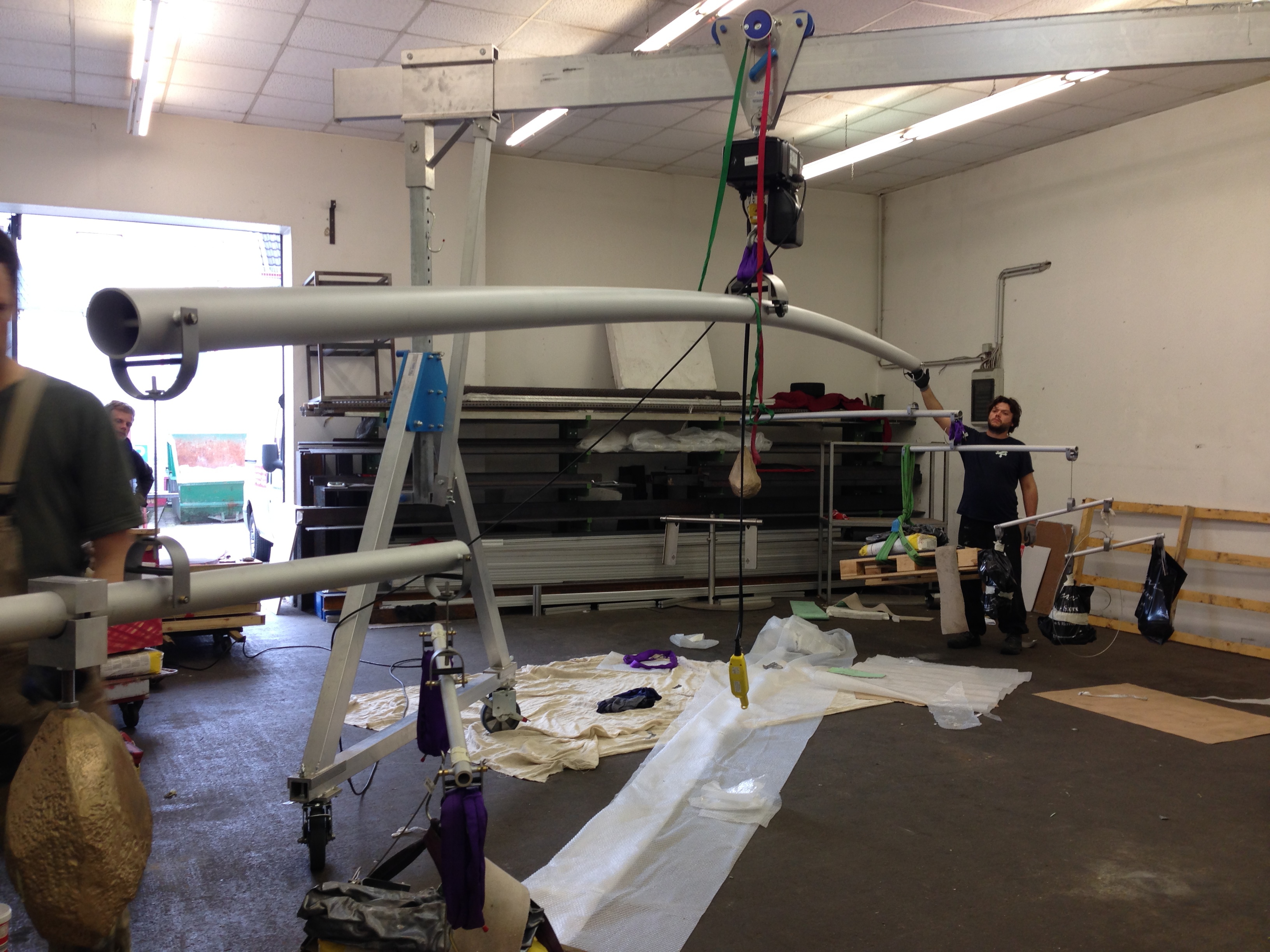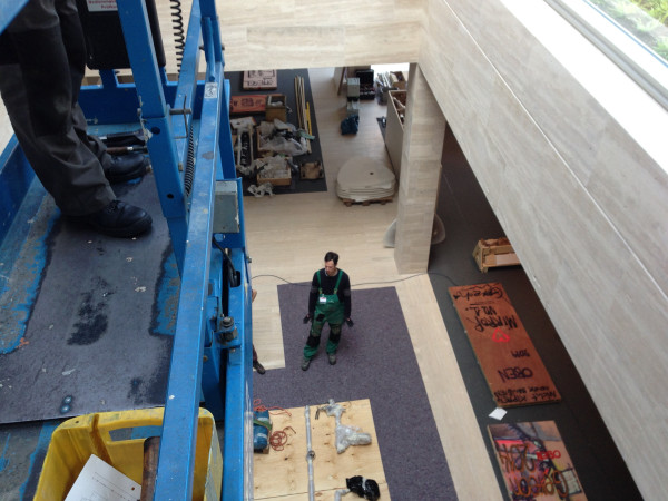 Mobile von Gereon Krebber für die Sparkasse Bonn, Neubau Hauptstelle Friedensplatz. Metall, Spiegel, Beton, 1kg Gold, Zweiteilig.