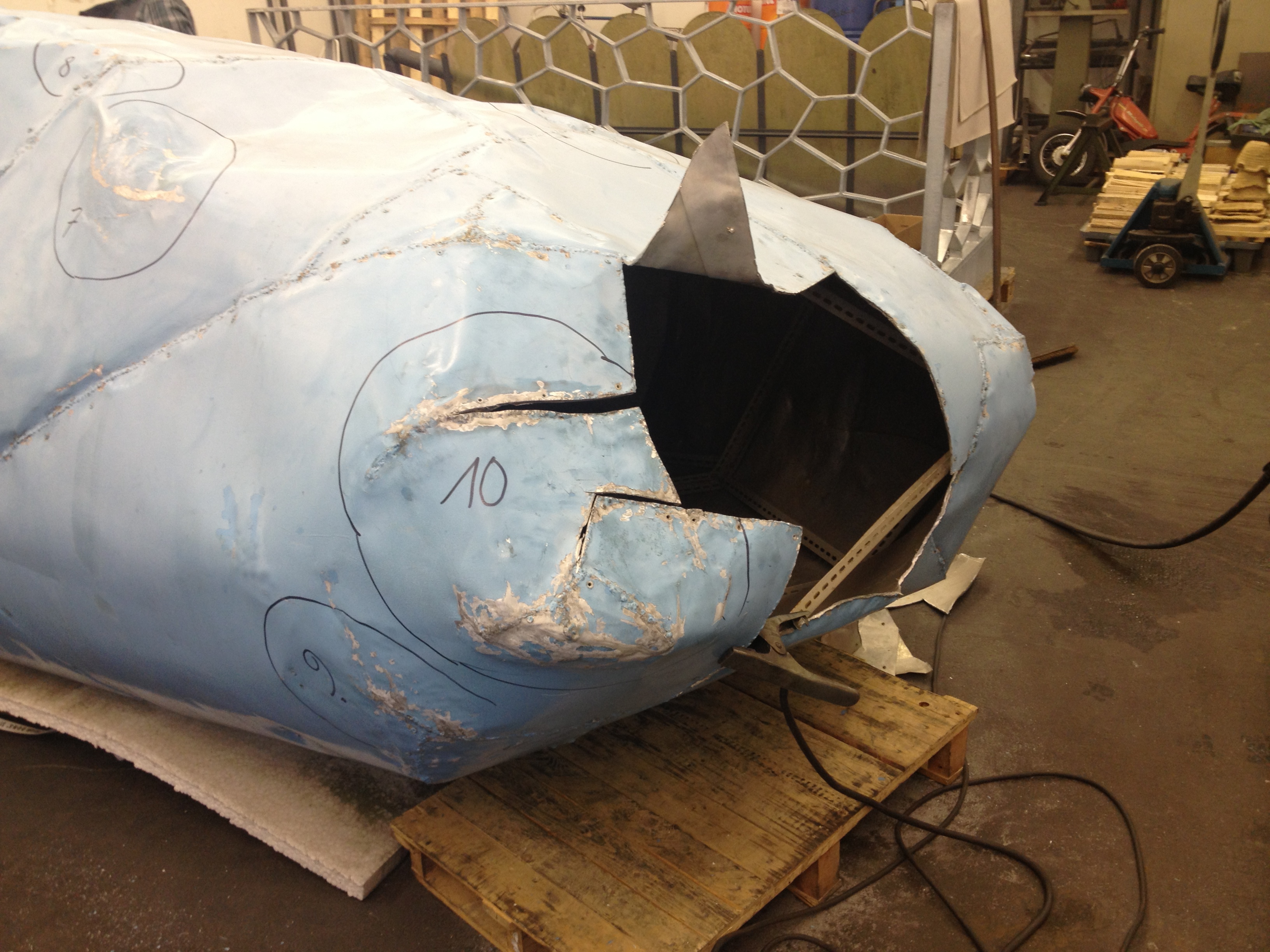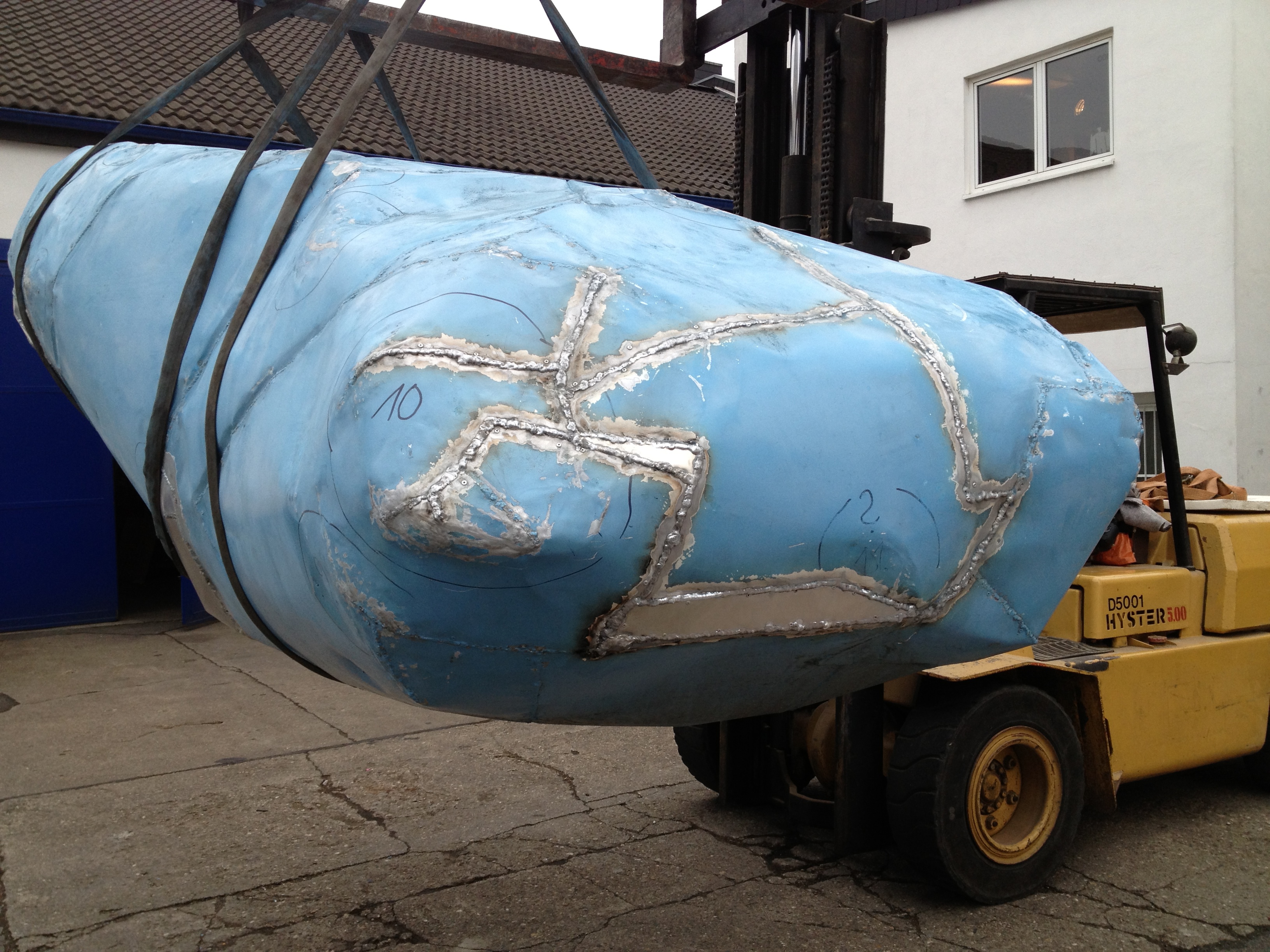 Repartur des Kunstwerks "Feile" von Franz West. Besonderes Augenmerk lag darauf den individuellen Schweißstil von Franz West zu kopieren.