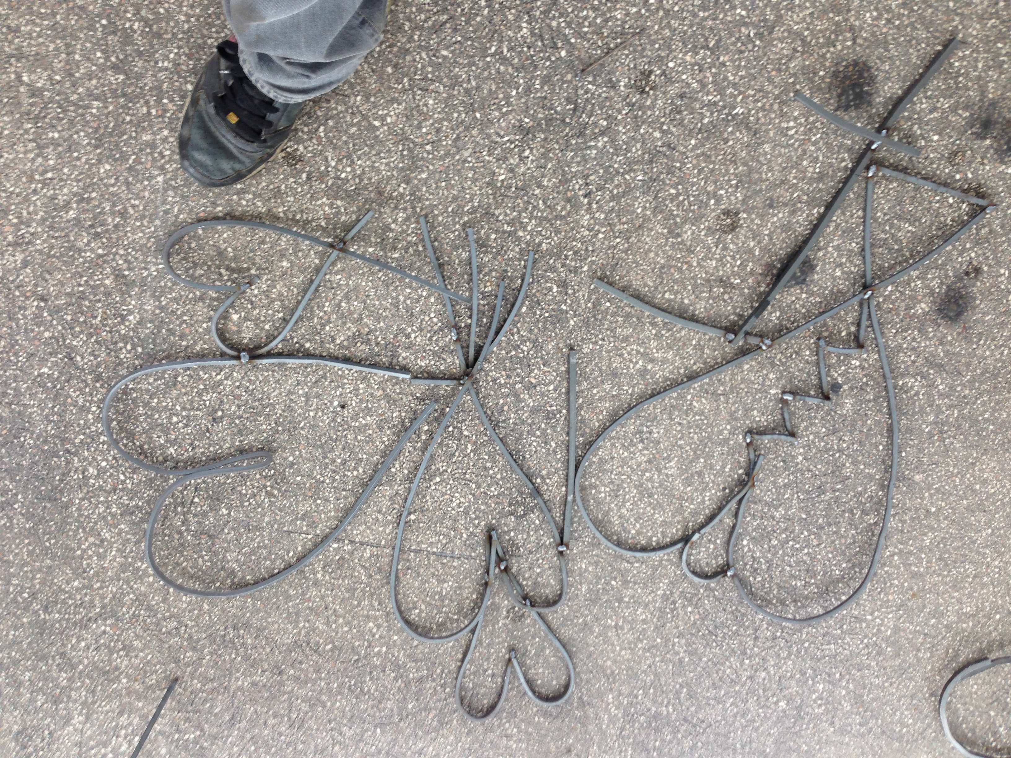 Stahlskulpuren auf Basis von Schulbank-Kritzeleien.