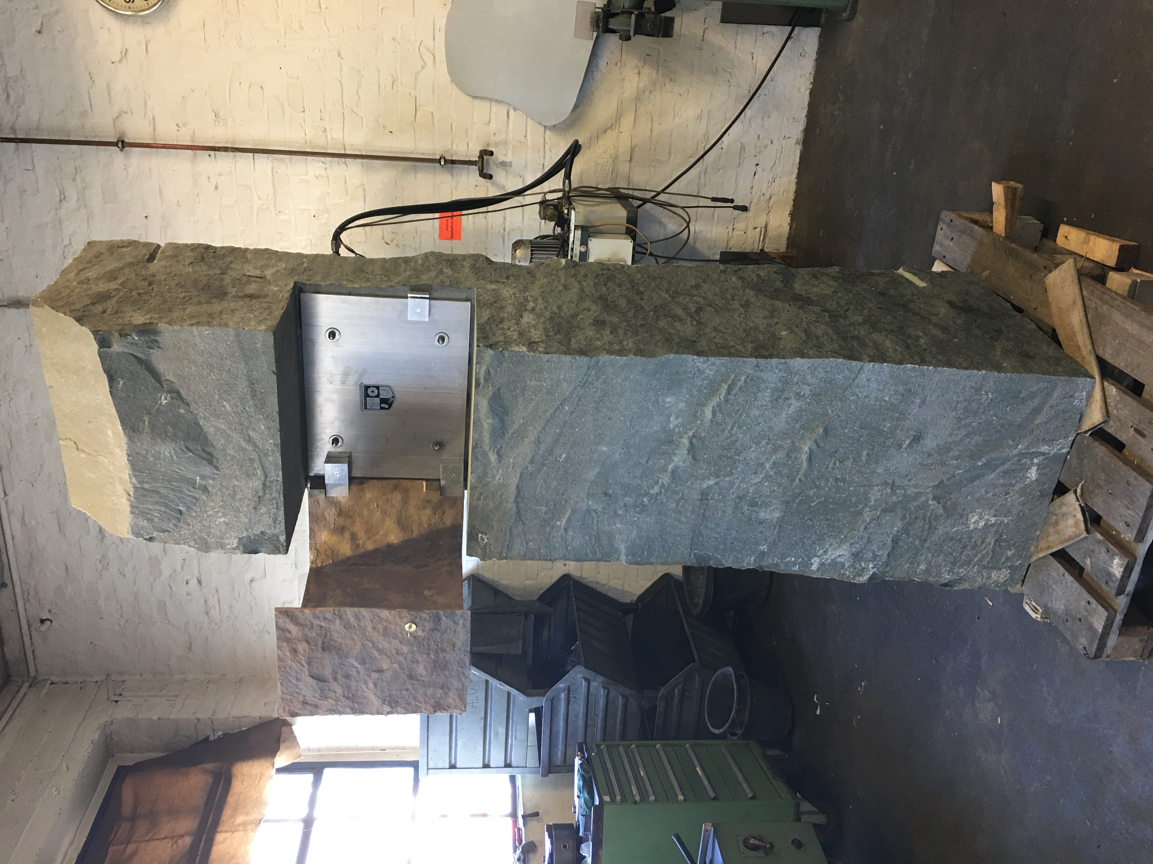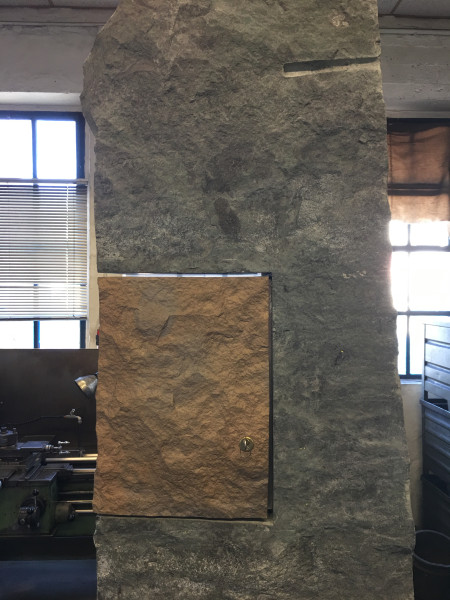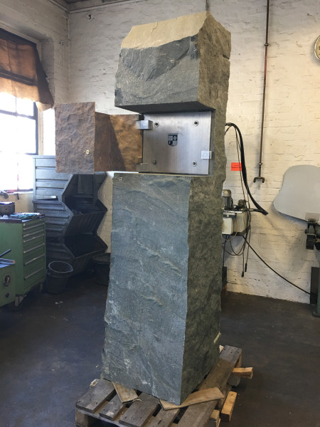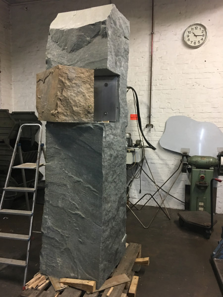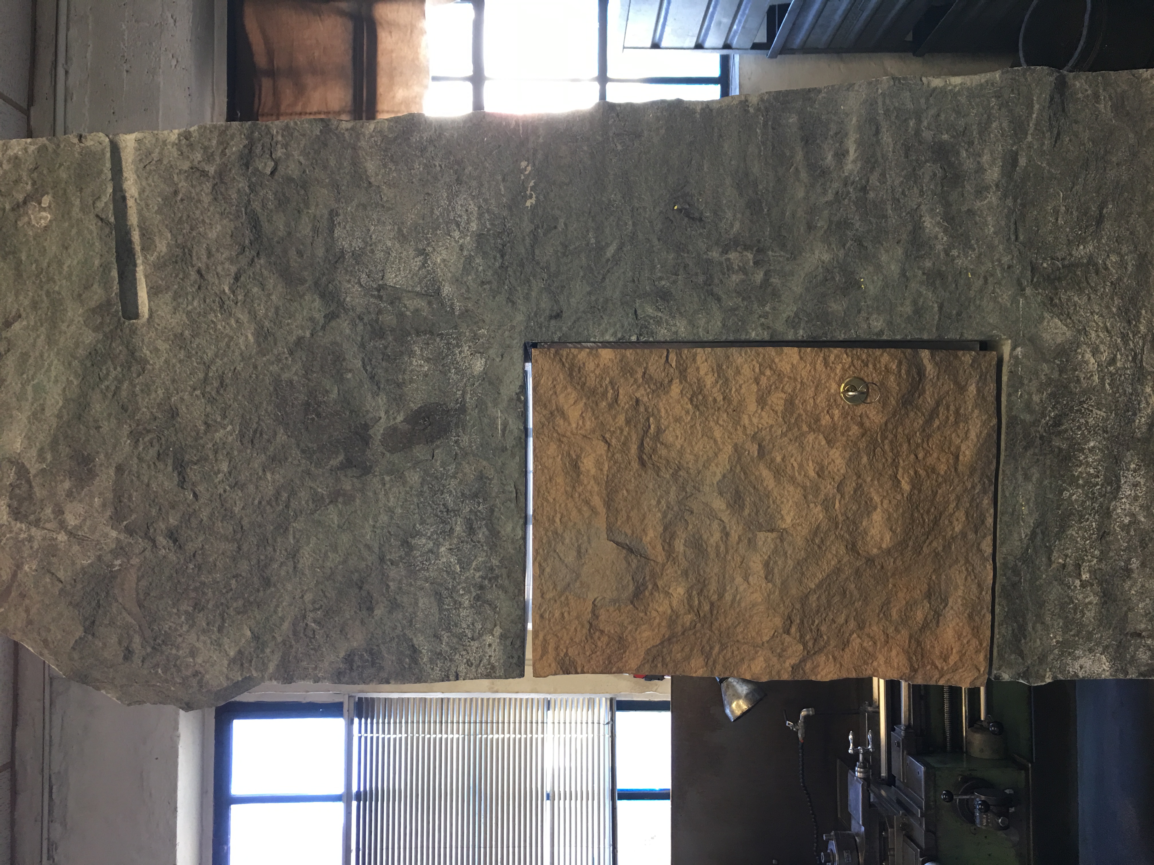 Bronzeguss-Klappe von Abdruck des Original-Steinsegments. Skulptur von Ulrich Rückriem für die Pfarrkirche „Seliger Rupert Mayer“ in Poing.