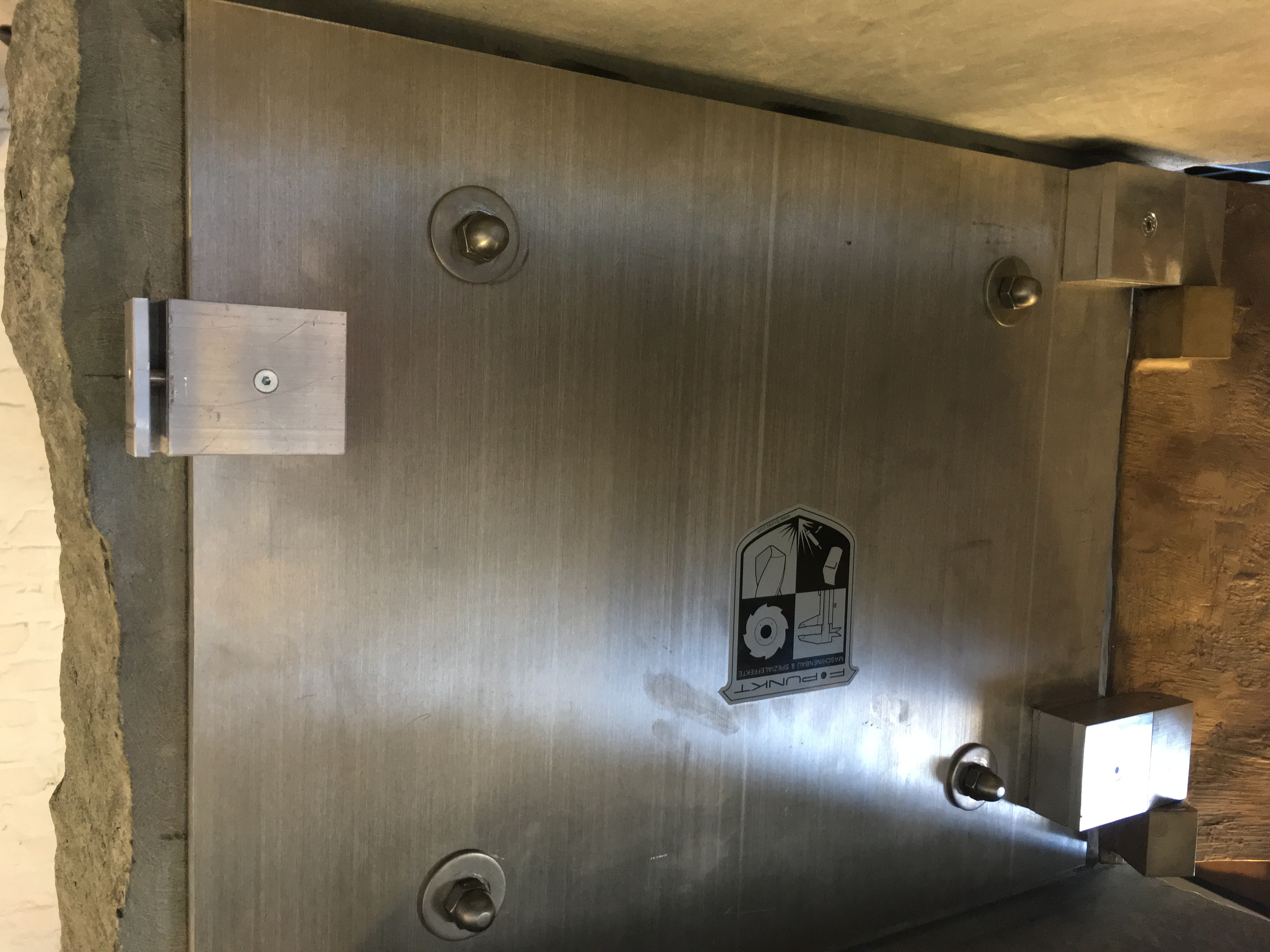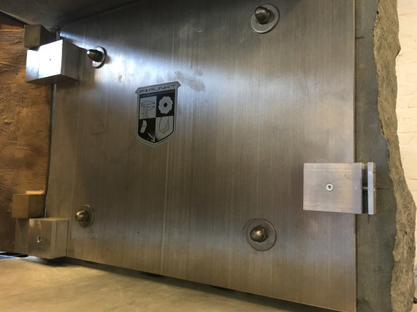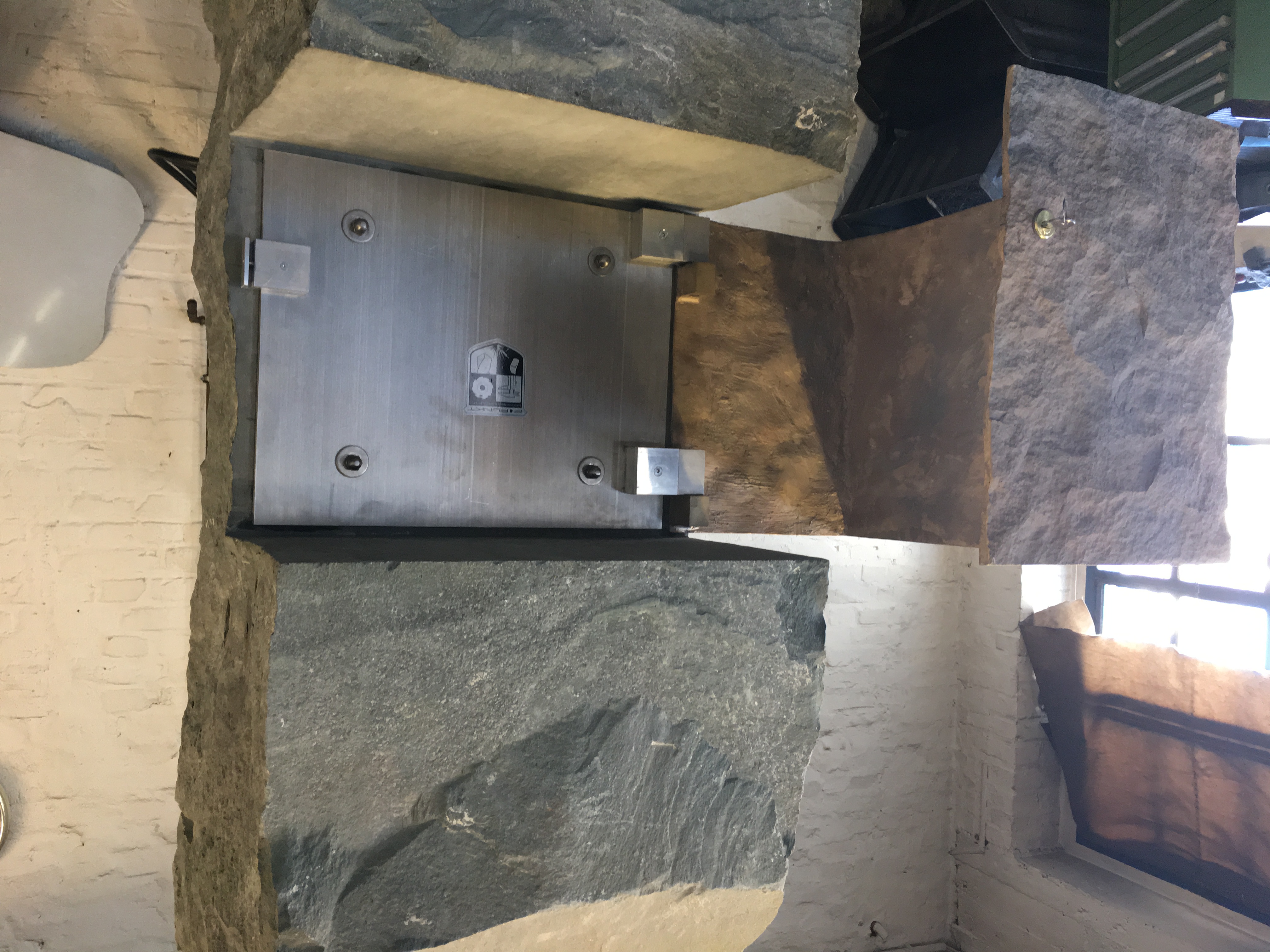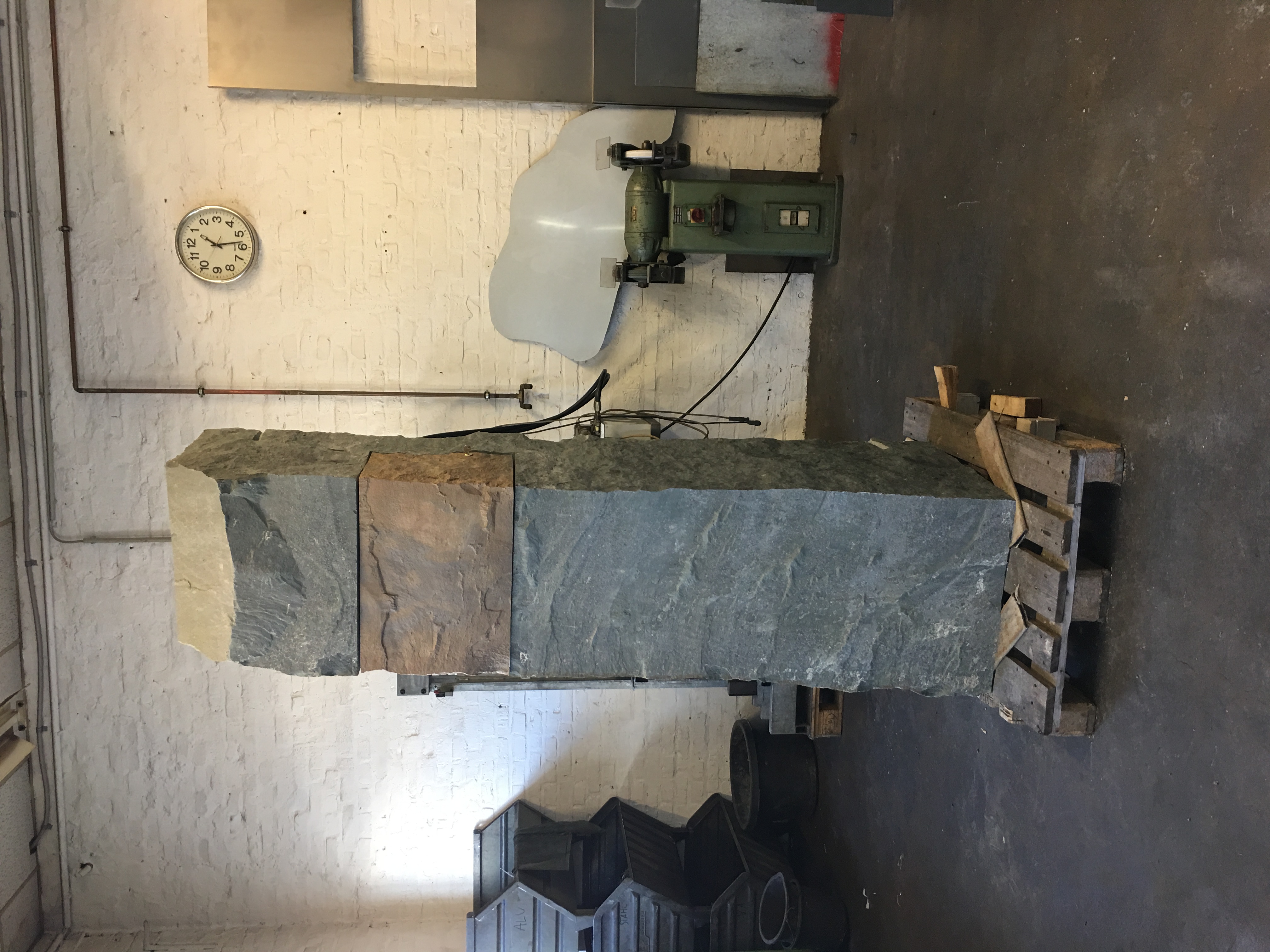 Bronzeguss-Klappe von Abdruck des Original-Steinsegments. Skulptur von Ulrich Rückriem für die Pfarrkirche „Seliger Rupert Mayer“ in Poing.