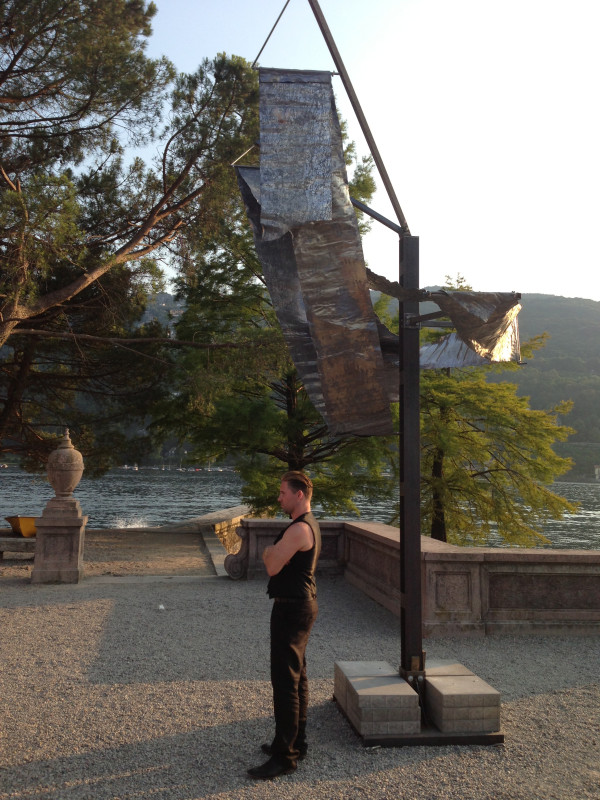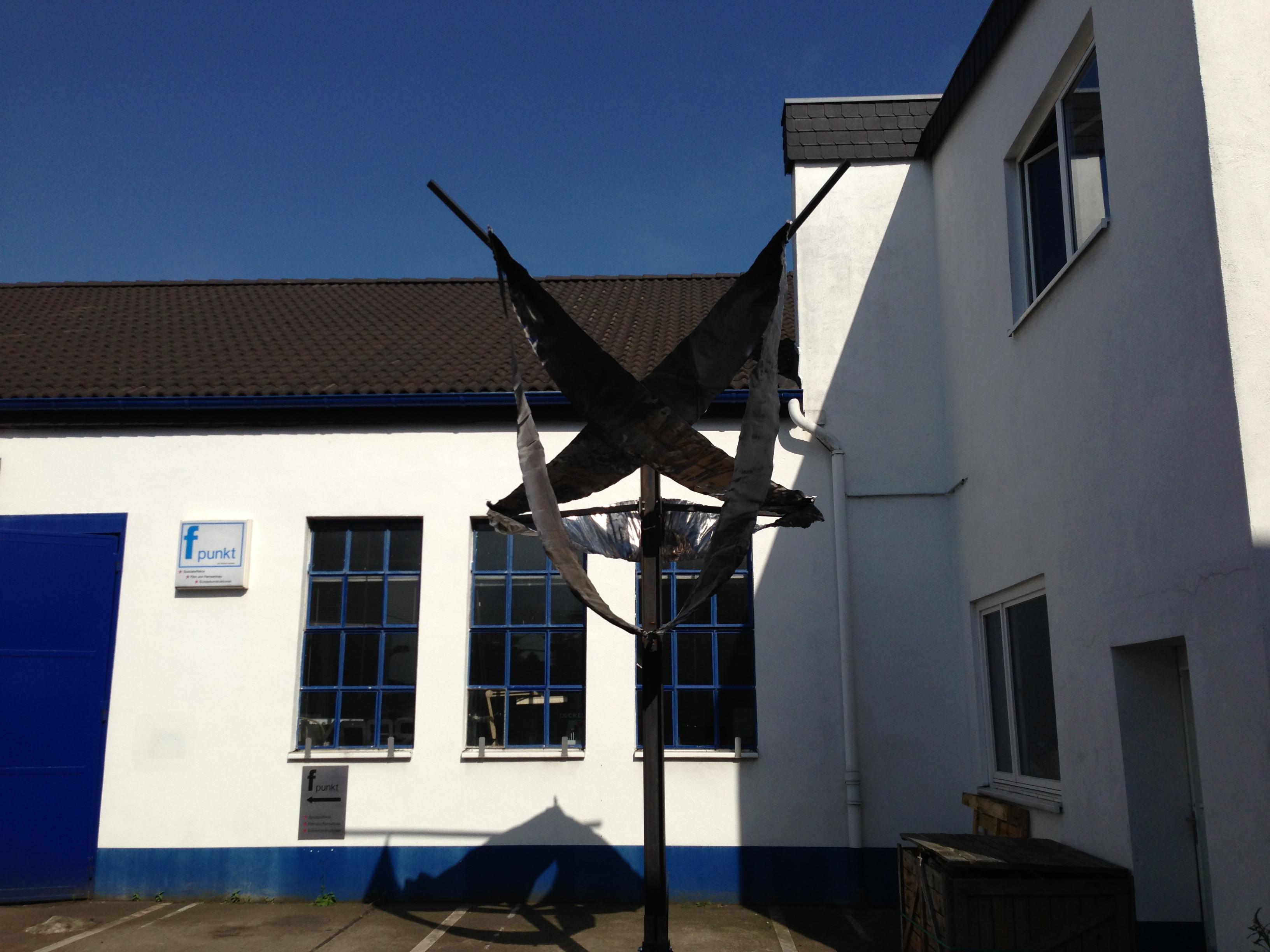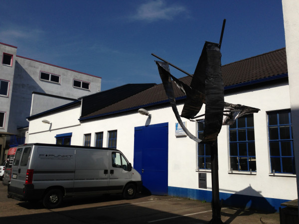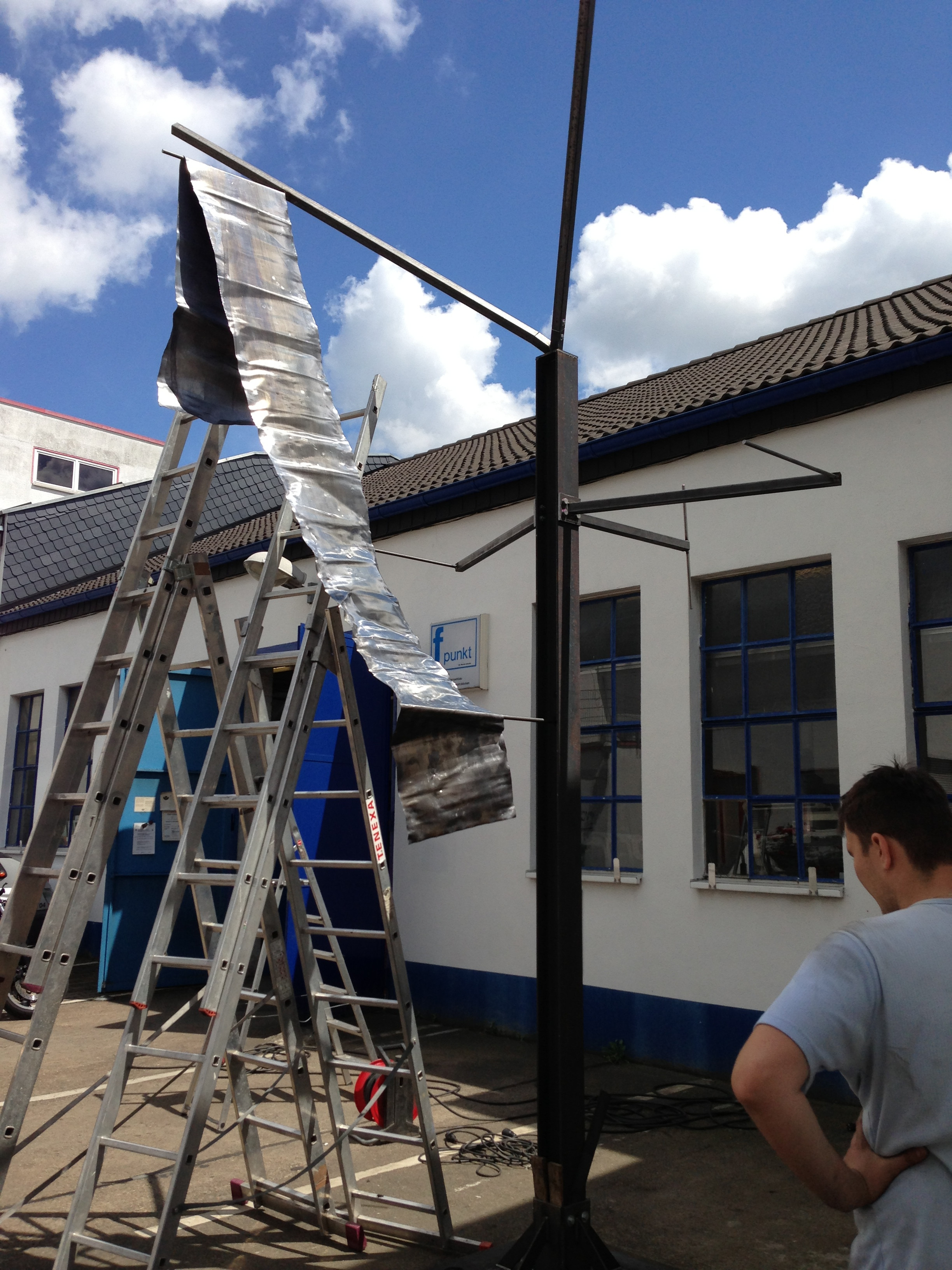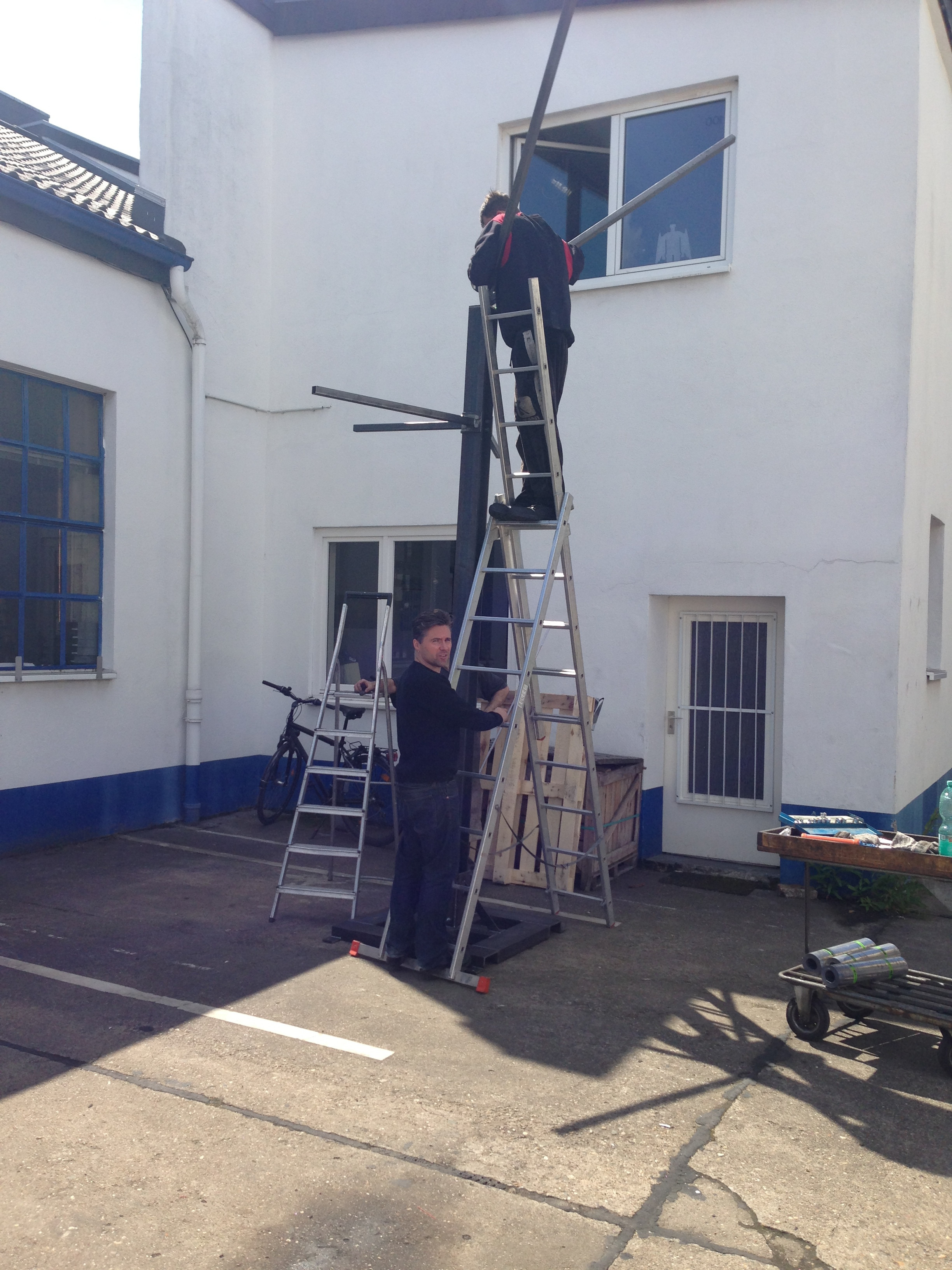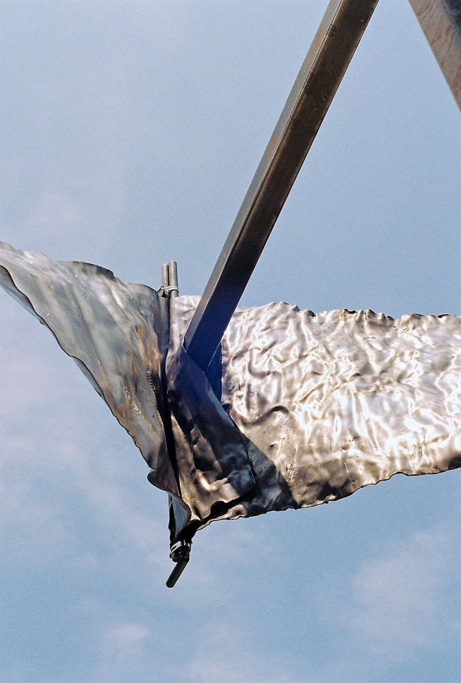 Stahlkonstruktion für eine Installation des Künstlers Christian Keinstar. Blei, Stahl, Beton.