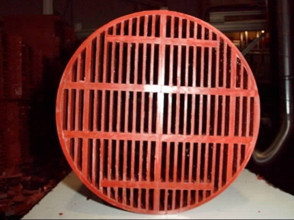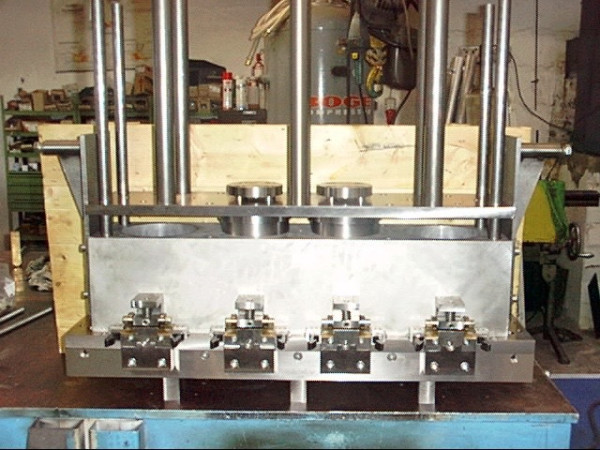 Diverse Teile einer Spritzgussmaschine zur Herstellung brandschutzsicherer Lüftungsgitter.