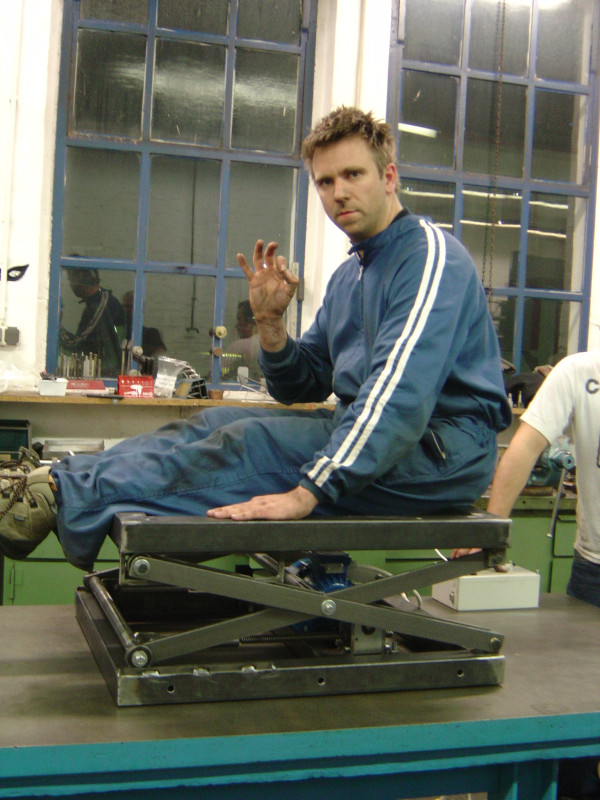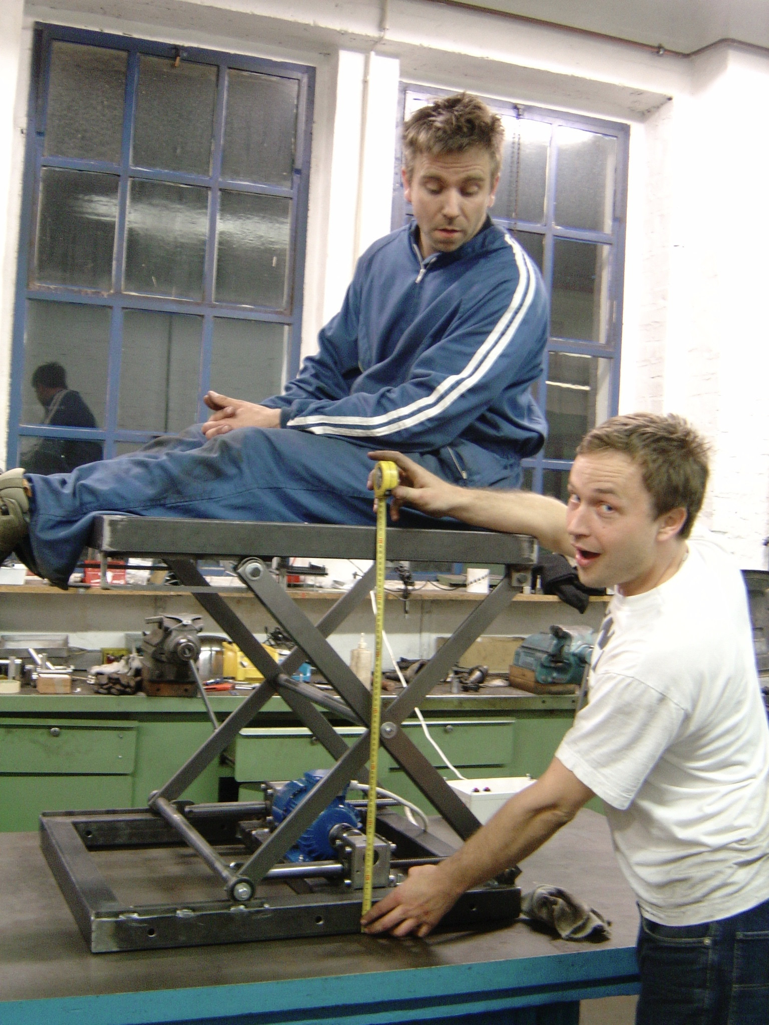 Hubtisch für Kunstprojekt First Person Pinball: Ermöglicht die Anpassung der Installation an unterschiedliche Körpergrössen.