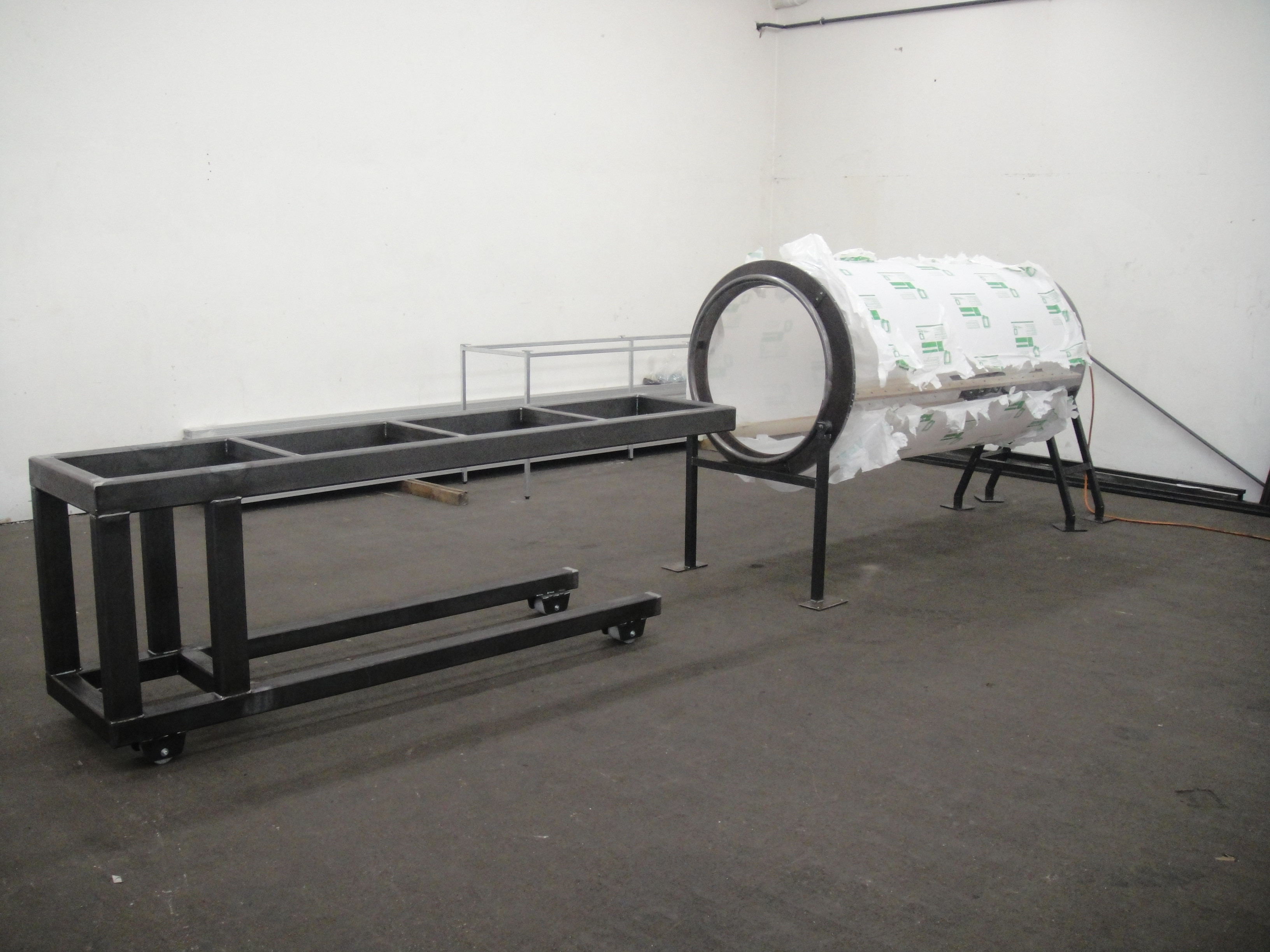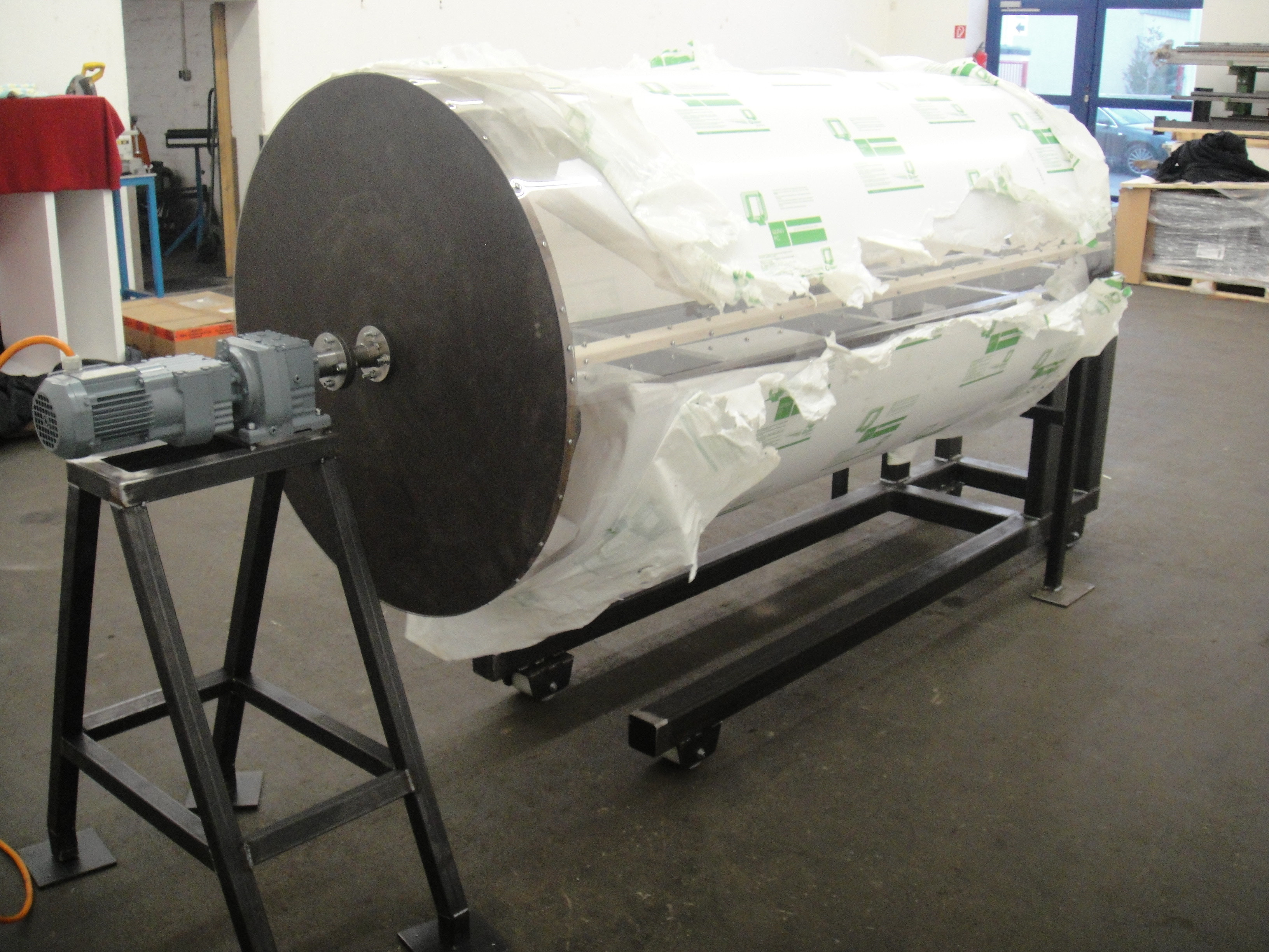 Rotierende Plexiglasröhre mit innenliegenden Schaufeln für Big Brother: in der Sendung wurde die Röhre mit großkalibrigen Ameisen befüllt.
