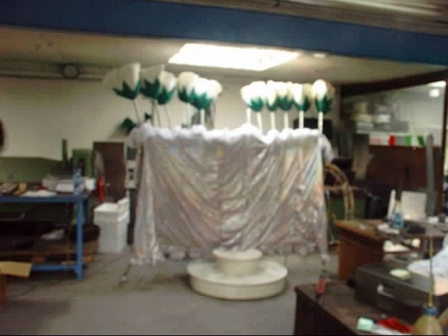 Die Schauspielerin im Inneren kann die Figur bewegen. Auf Knopfdruck öffnet sich das "Kostüm" und steht als "Wand" hinter ihr. Im Verkleidungs-Stoff waren noch jede Menge Lauflichter eingearbeitet.