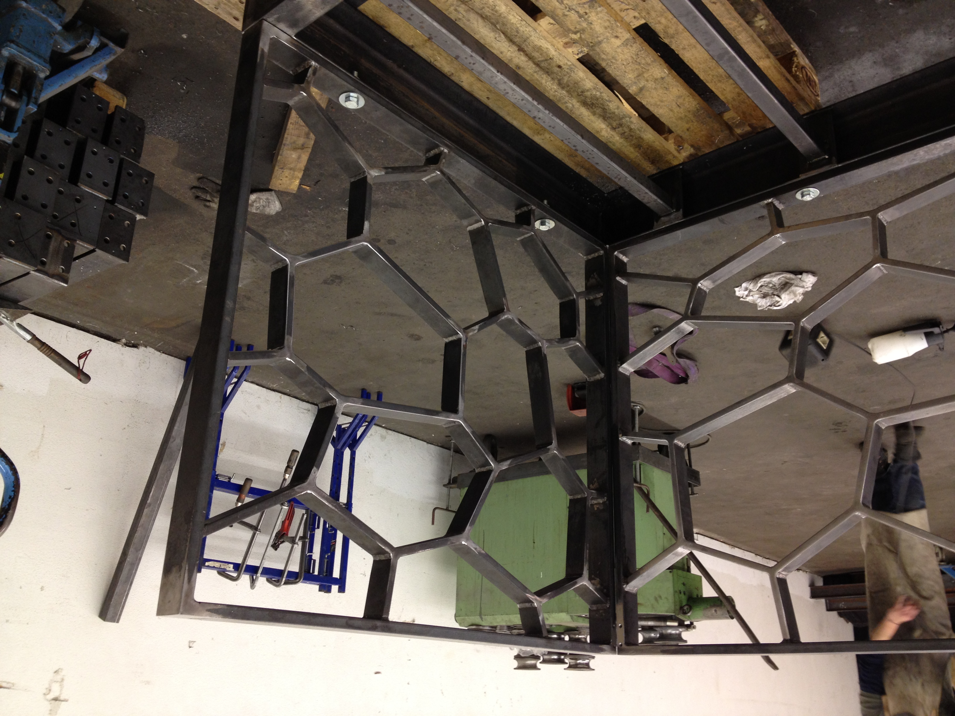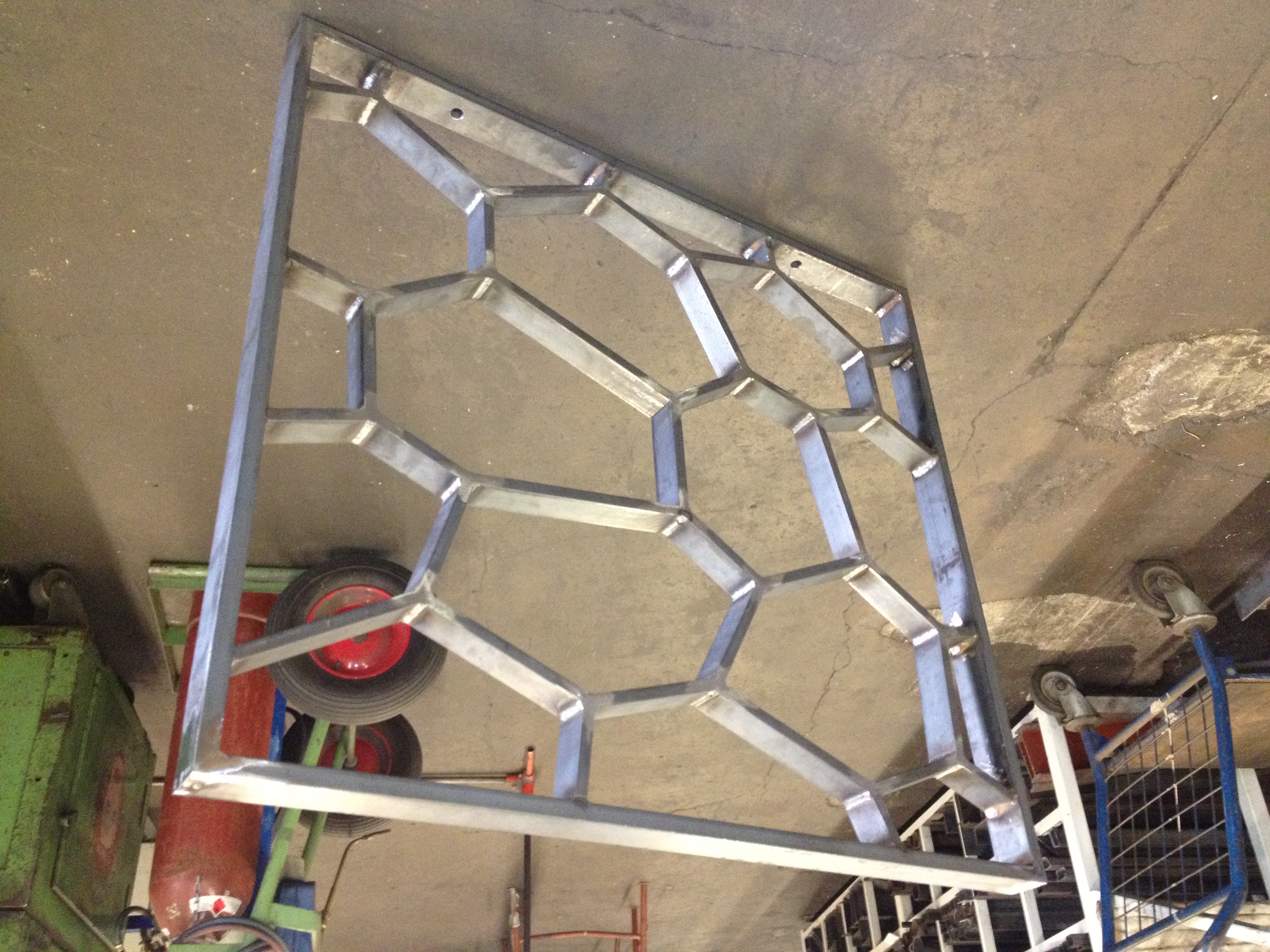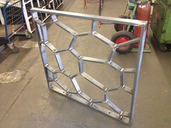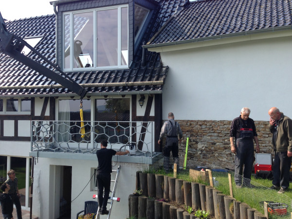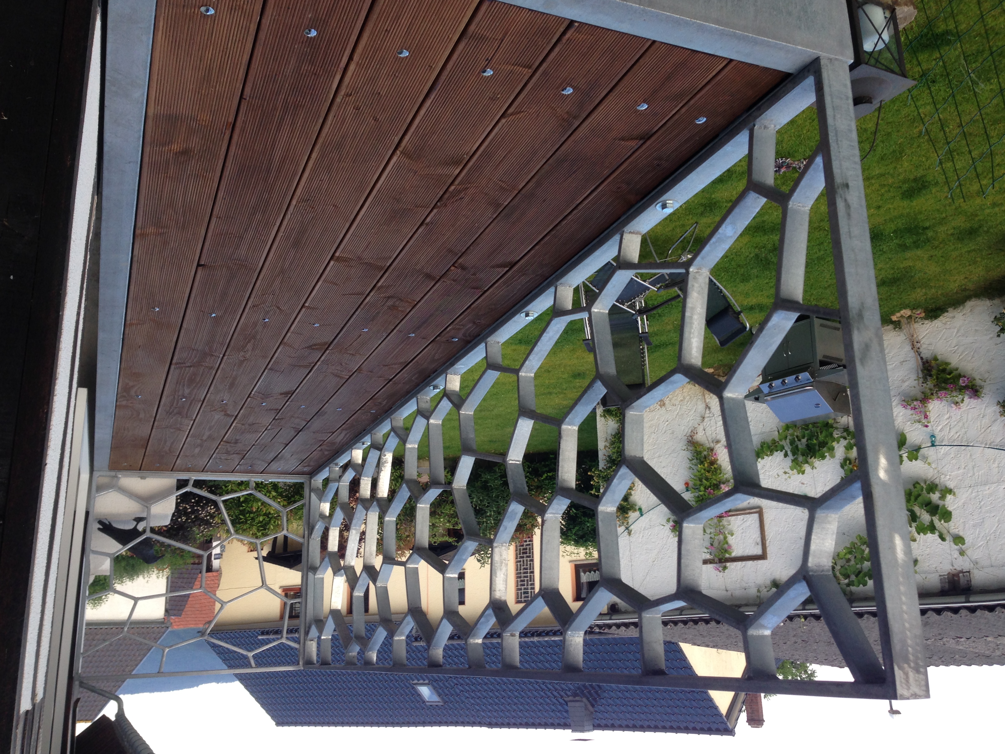 Balkongeländer in Form eines Voronoi-Diagramms aus verzinktem Stahl.