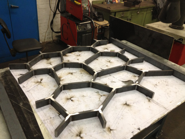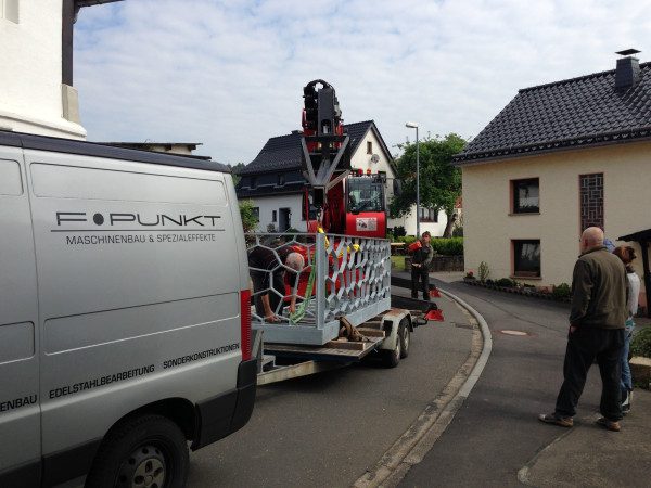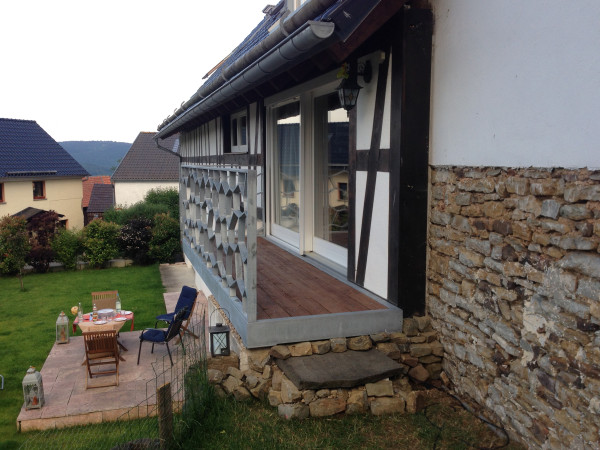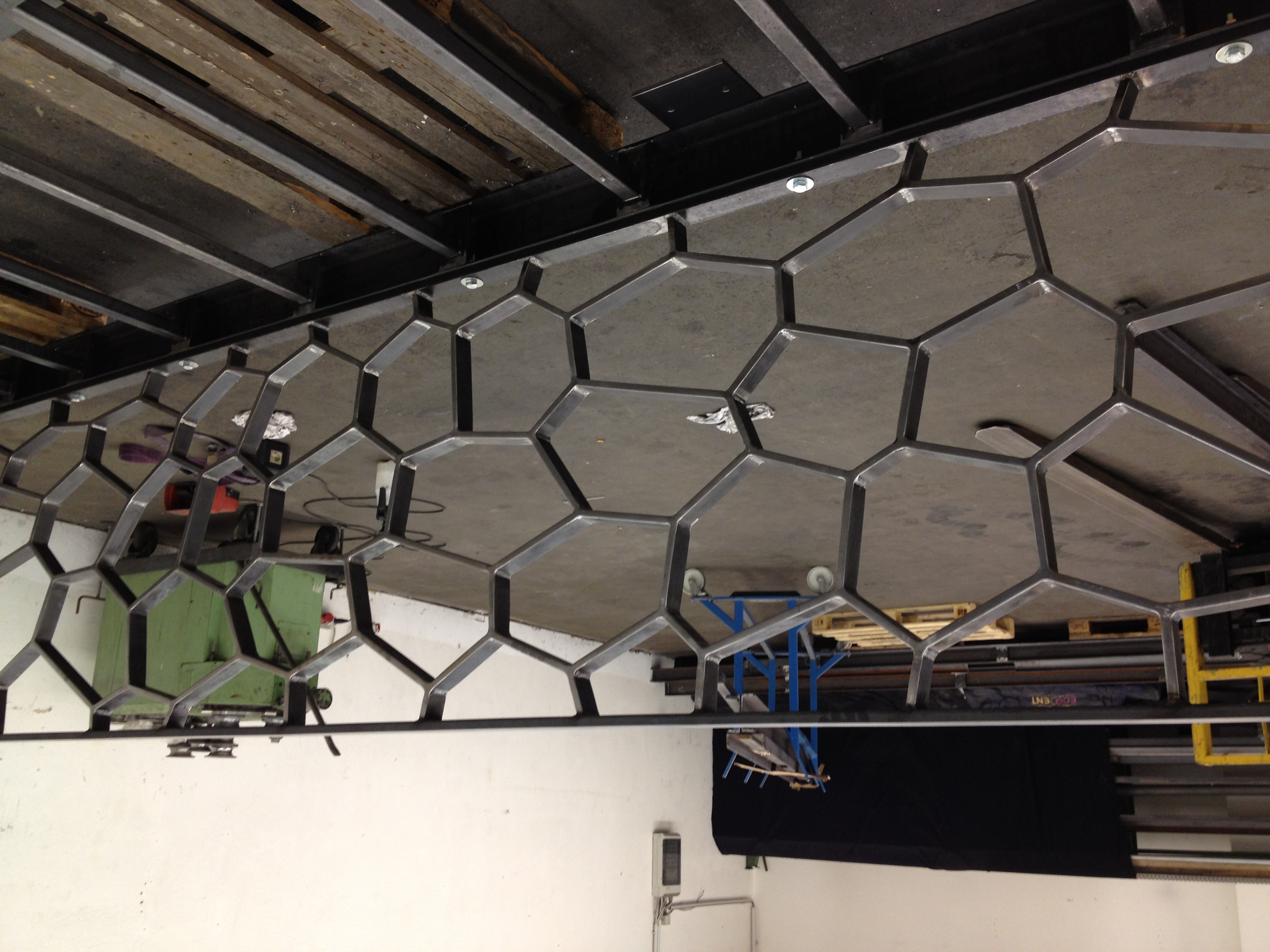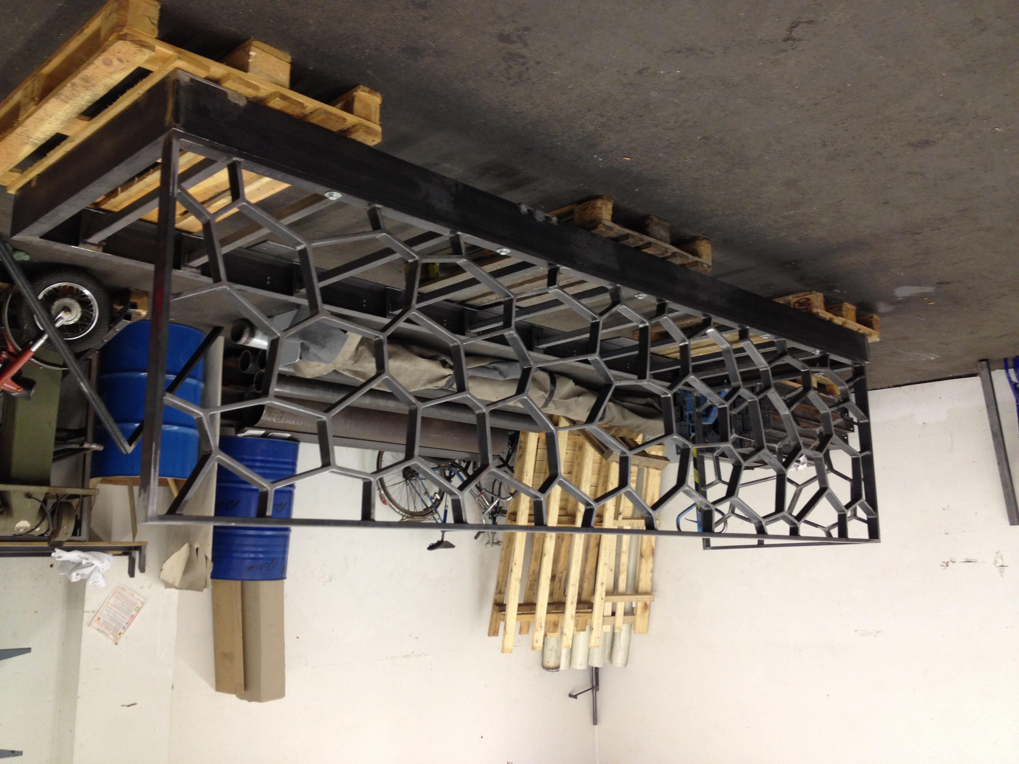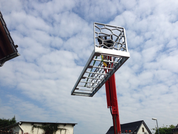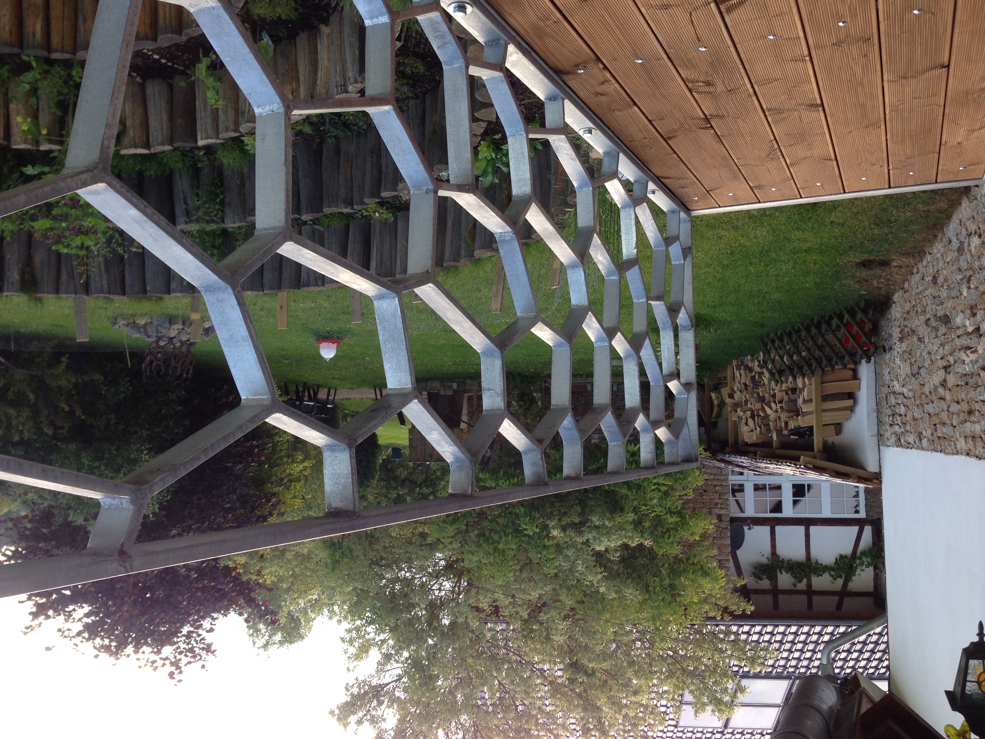 Balkongeländer in Form eines Voronoi-Diagramms aus verzinktem Stahl.