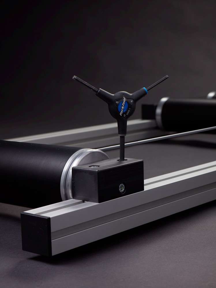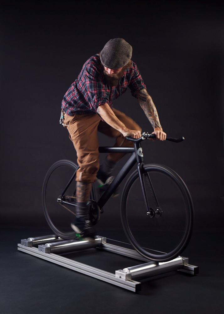 Profi-Rollentrainer aus CNC-gefrästen Teilen mit Präzisionslagern. Langlebige, korrosionsfreie Aluminiumkonstruktion. Egal ob SingleSpeed/Fixed Gear, Rennrad, Trekking oder BMX, der Trainer ist flexibel anpassbar auf Fahrradgrößen von 20" bis 28". Kaum hörbare Laufgeräusche und geeignet für hohe Geschwindigkeiten. Zum Training von Gleichgewicht, Ausdauer und Trittfrequenz auf dem eigenen Fahrrad.