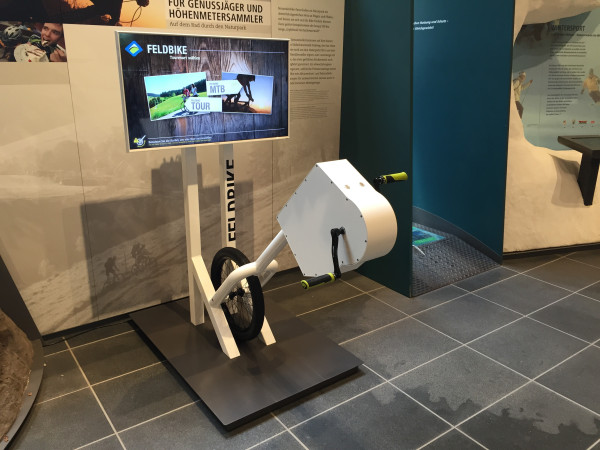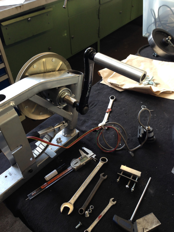 Konstruktion der Hardware für ein interaktives Fahrradmodul. Eine dynamische Wirbelstrombremse ermöglicht variirenden Schwierigkeitsgrad.