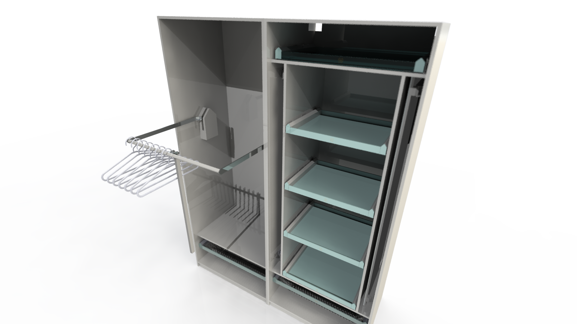 Design und Engineering des Innenlebens eines Kleiderschranksystems in Zusammenarbeit mit Nicolas Thomkins.