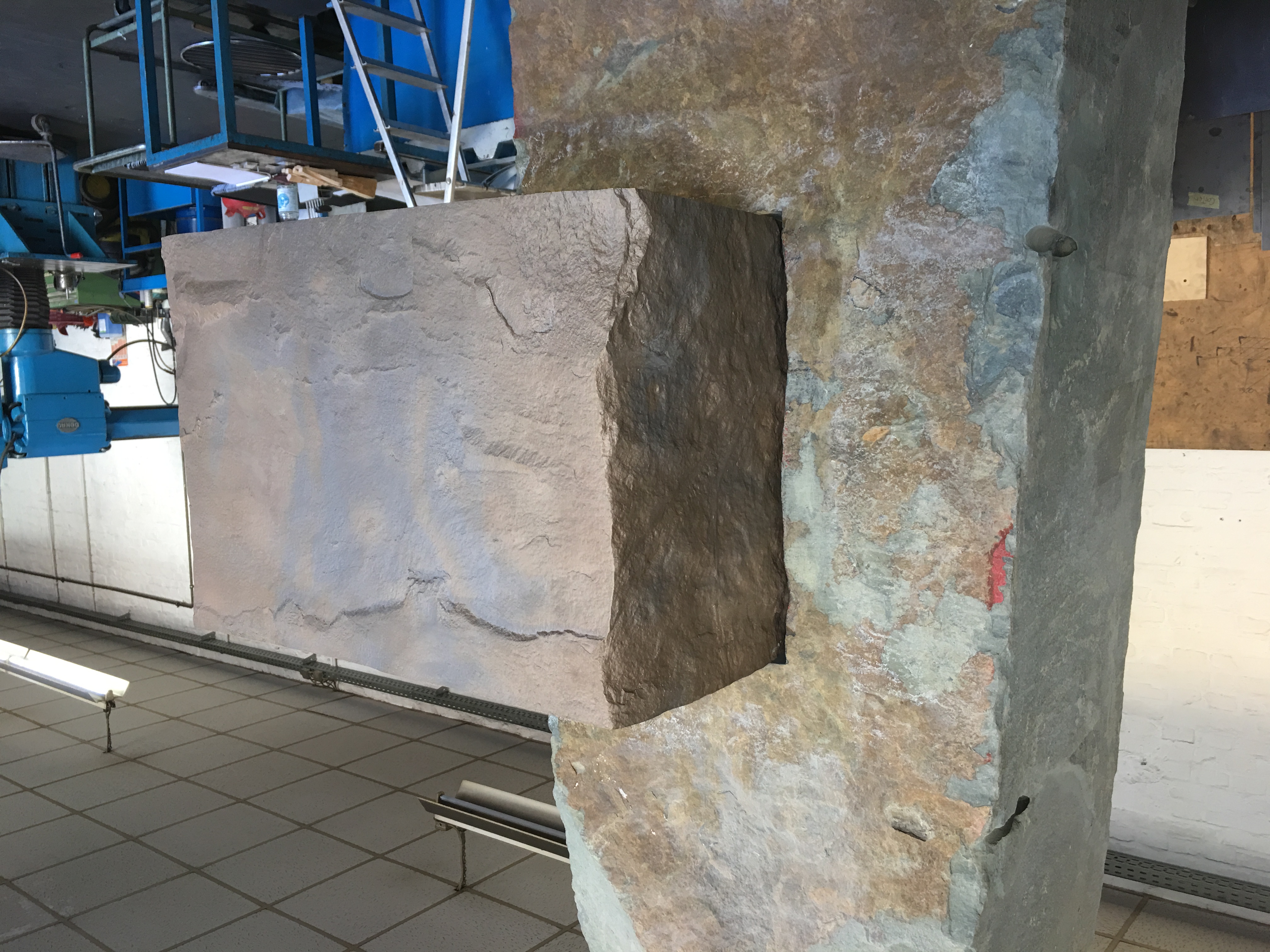 Bronzeguss-Klappe von Abdruck des Original-Steinsegments. Skulptur von Ulrich Rückriem für die Pfarrkirche „Seliger Rupert Mayer“ in Poing.
