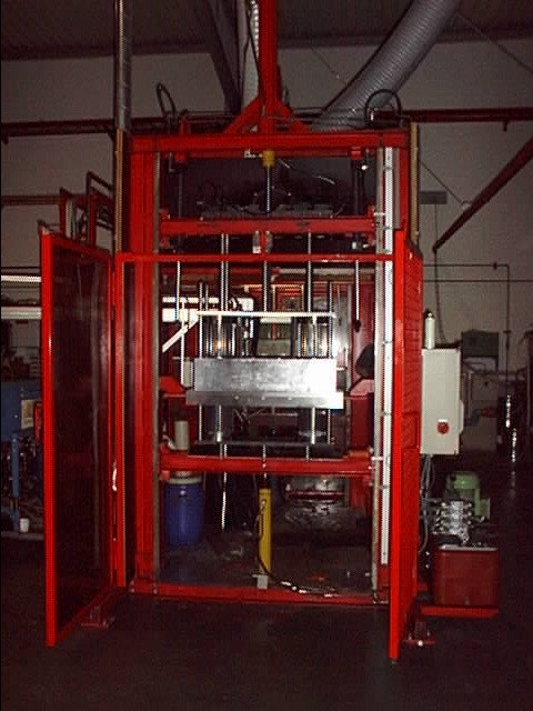 Diverse Teile einer Spritzgussmaschine zur Herstellung brandschutzsicherer Lüftungsgitter.