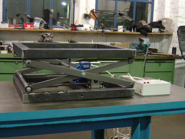 Hubtisch für Kunstprojekt First Person Pinball: Ermöglicht die Anpassung der Installation an unterschiedliche Körpergrössen.