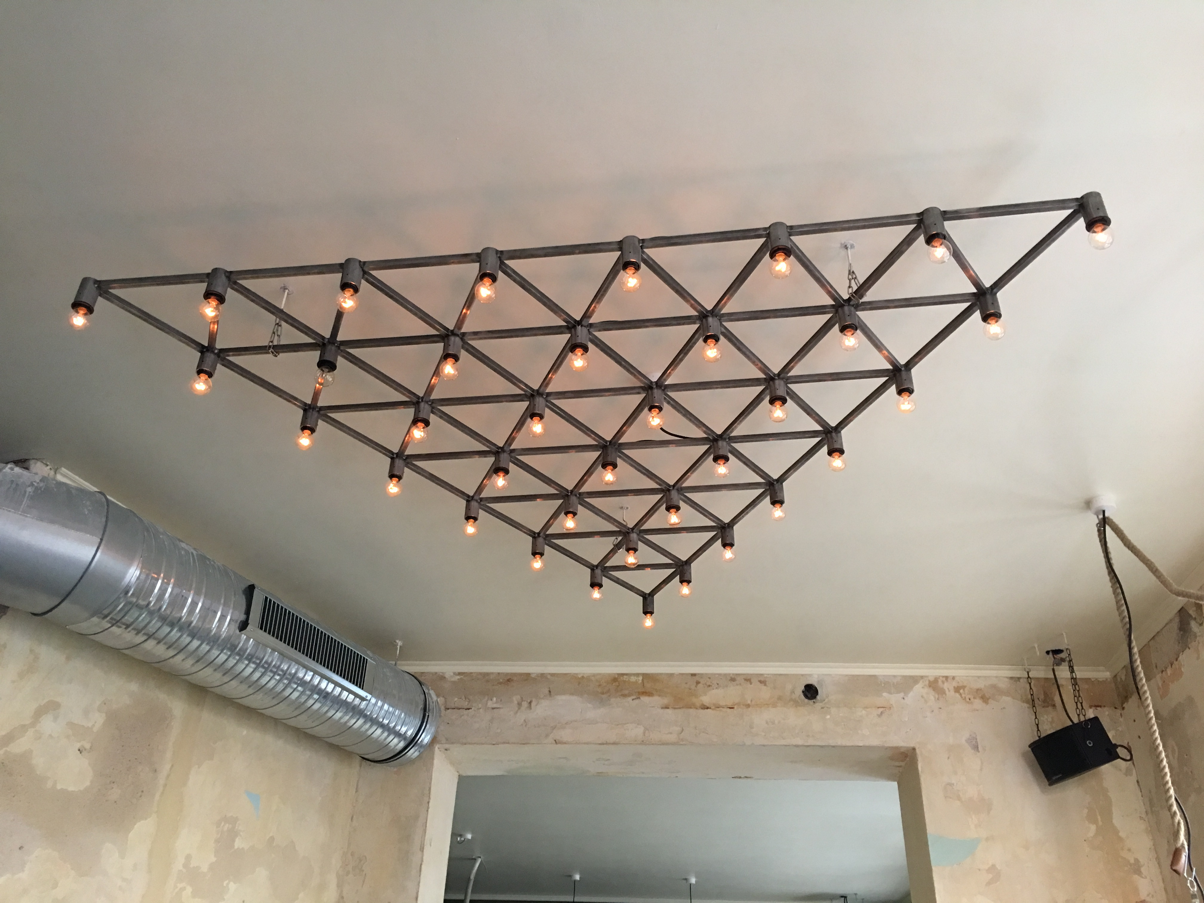 Deckenlampe für Szenekneipe Schnörres in der Kölner Südstadt. Design Marco Martins.