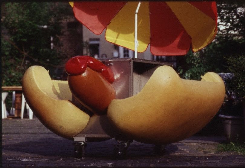 Konstruktion eines HotDog Wagen, Deko in Zusammenarbeit mit Pit Paffen Sonderdekobau. Auflage: 5 Stück.