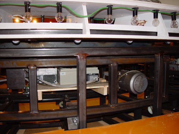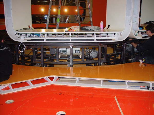 Ringförmige Stahlkonstruktion mit motorisch betriebenen Schlitten für Lichtwände. Bühnenelement für Fernsehshow "Ein Herz für Kinder";