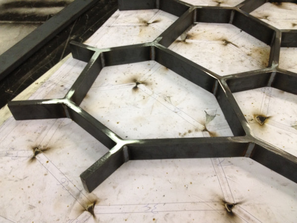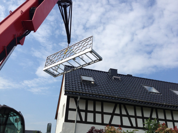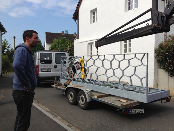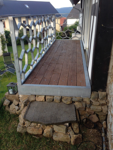 Balkongeländer in Form eines Voronoi-Diagramms aus verzinktem Stahl.